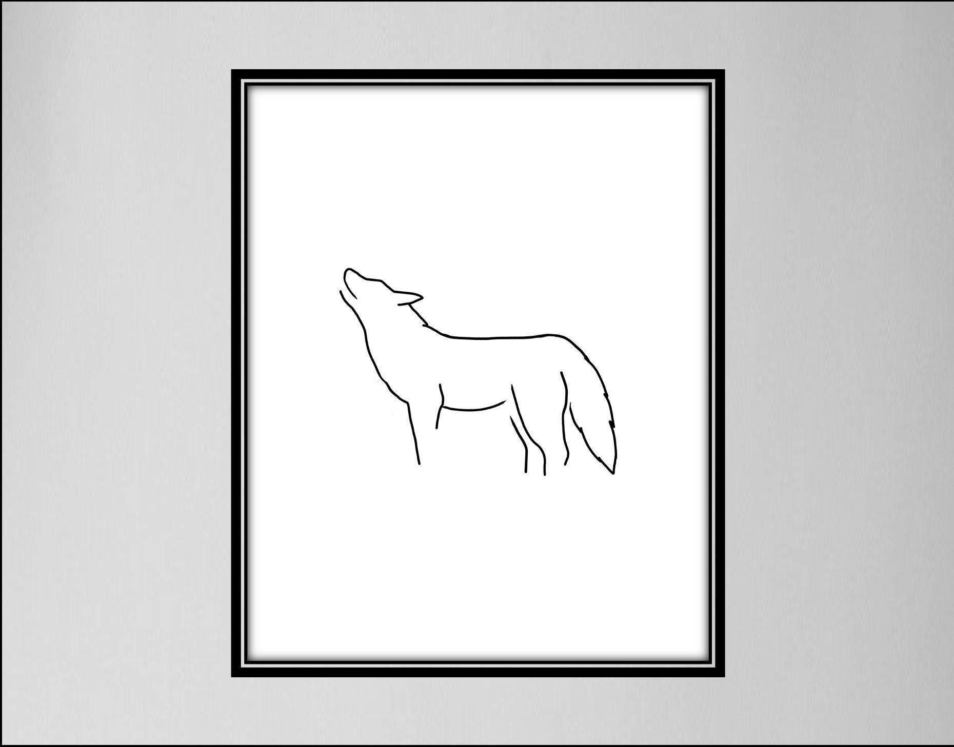 Disegno lineare di un lupo che ulula / STAMPA DIGITALE Schizzo di u...