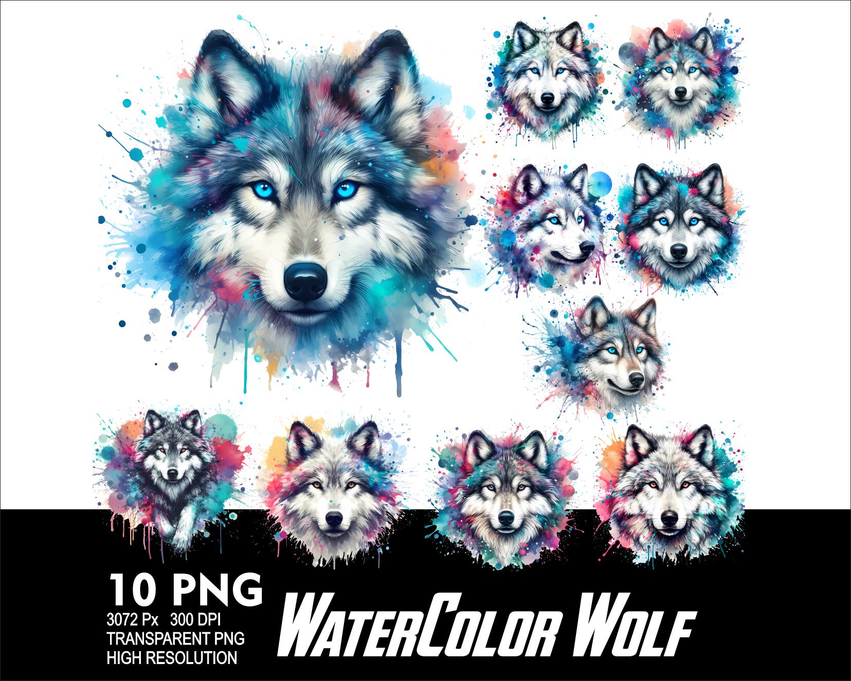 Disegno di lupo acquerello 10 PNG per sublimazione Png 300DPI alta ...