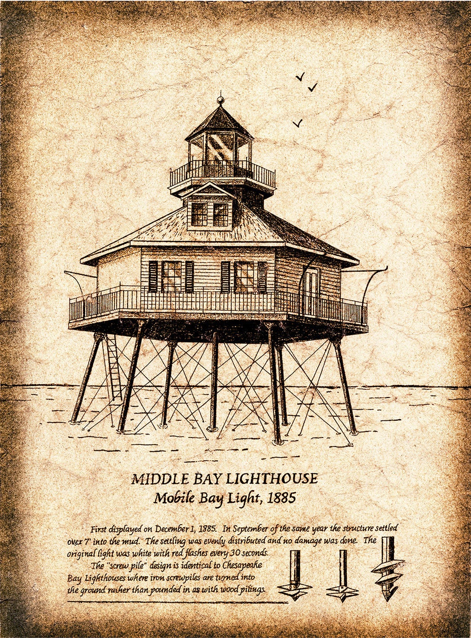 Faro di Middle Bay, Faro di Mobile Bay, Faro, Fari del Golfo del Me...