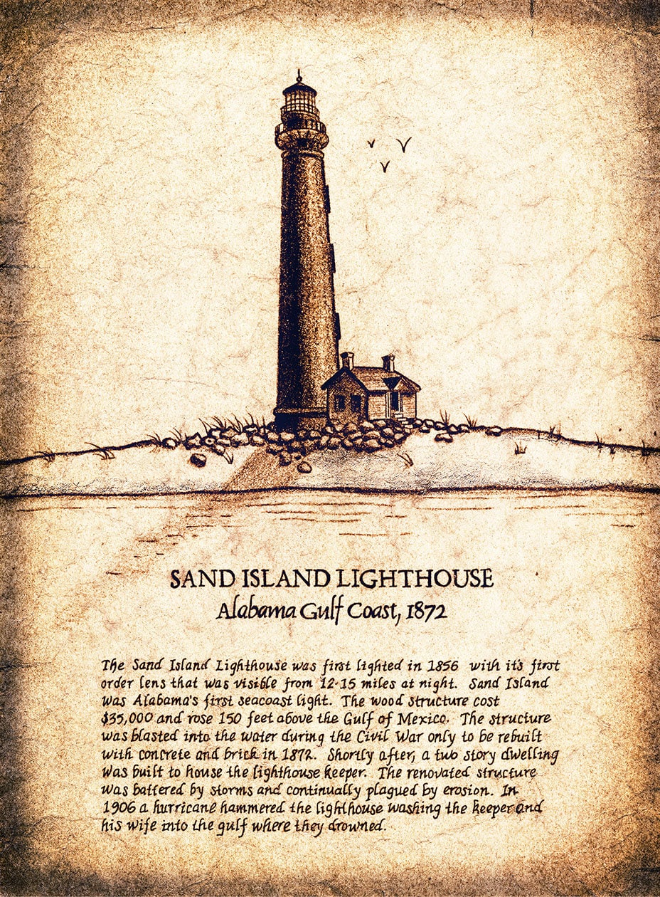 Faro di Sand Island - Fari della costa del Golfo - Baia di Mobile -...