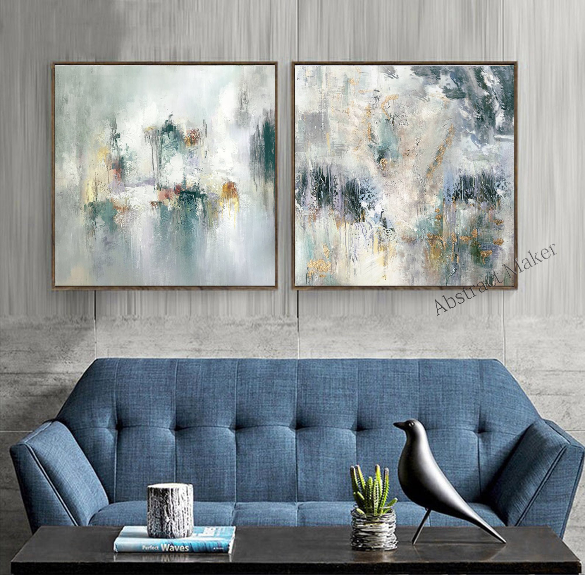 Dipinto originale su tela, coppia di dipinti astratti originali, ri...