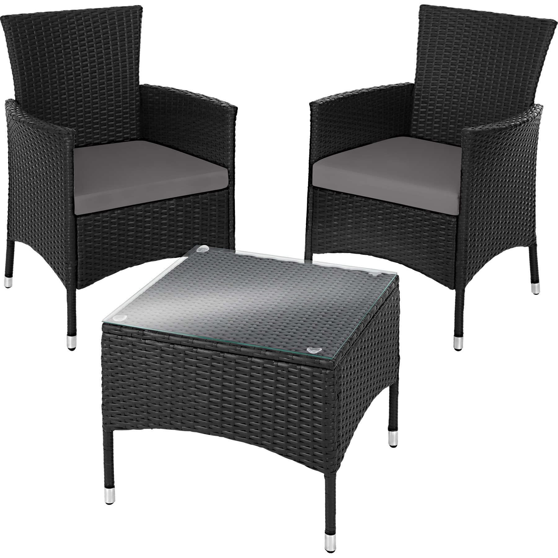 Set da giardino con 2 sedie e tavolino in alluminio e polyrattan