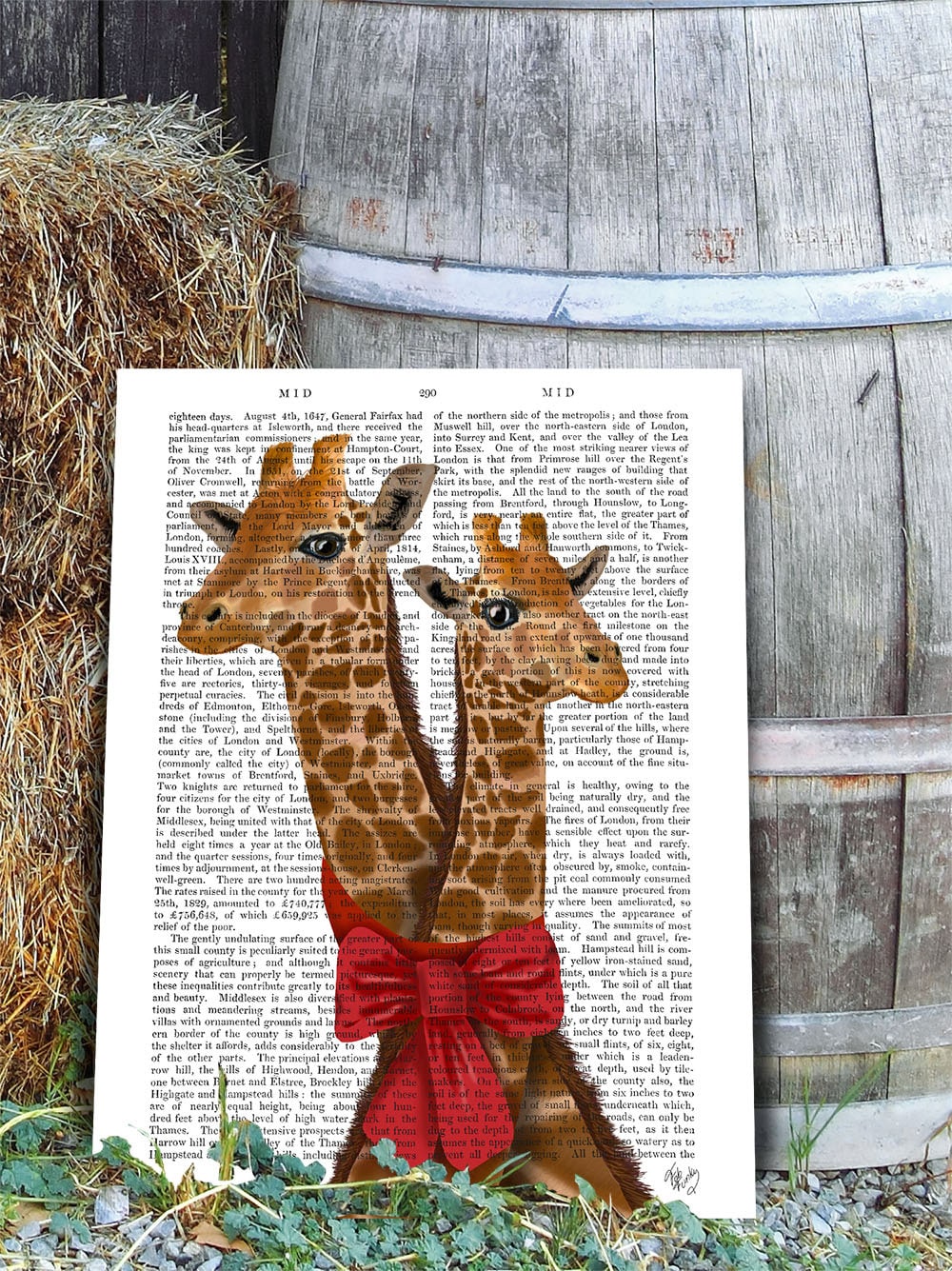 Stampa giraffa Giraffe e fiocco rosso - giraffa arte giraffa stampa...
