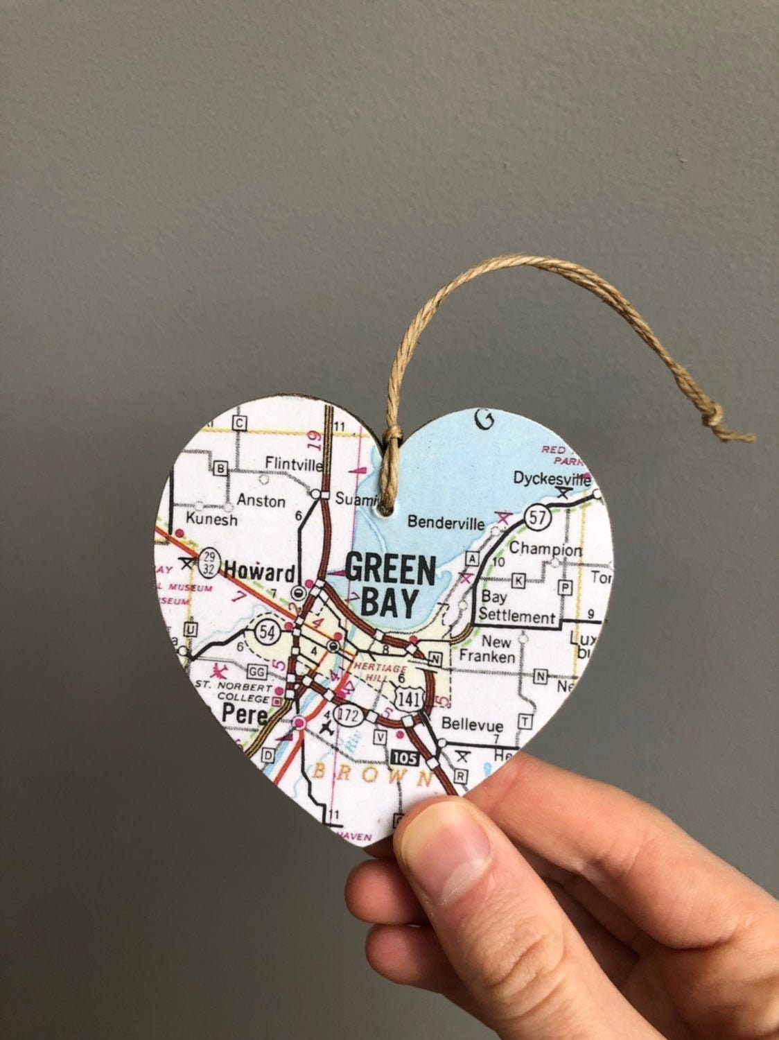 Ornamento a forma di cuore con mappa di Green Bay, ornamento di Gre...