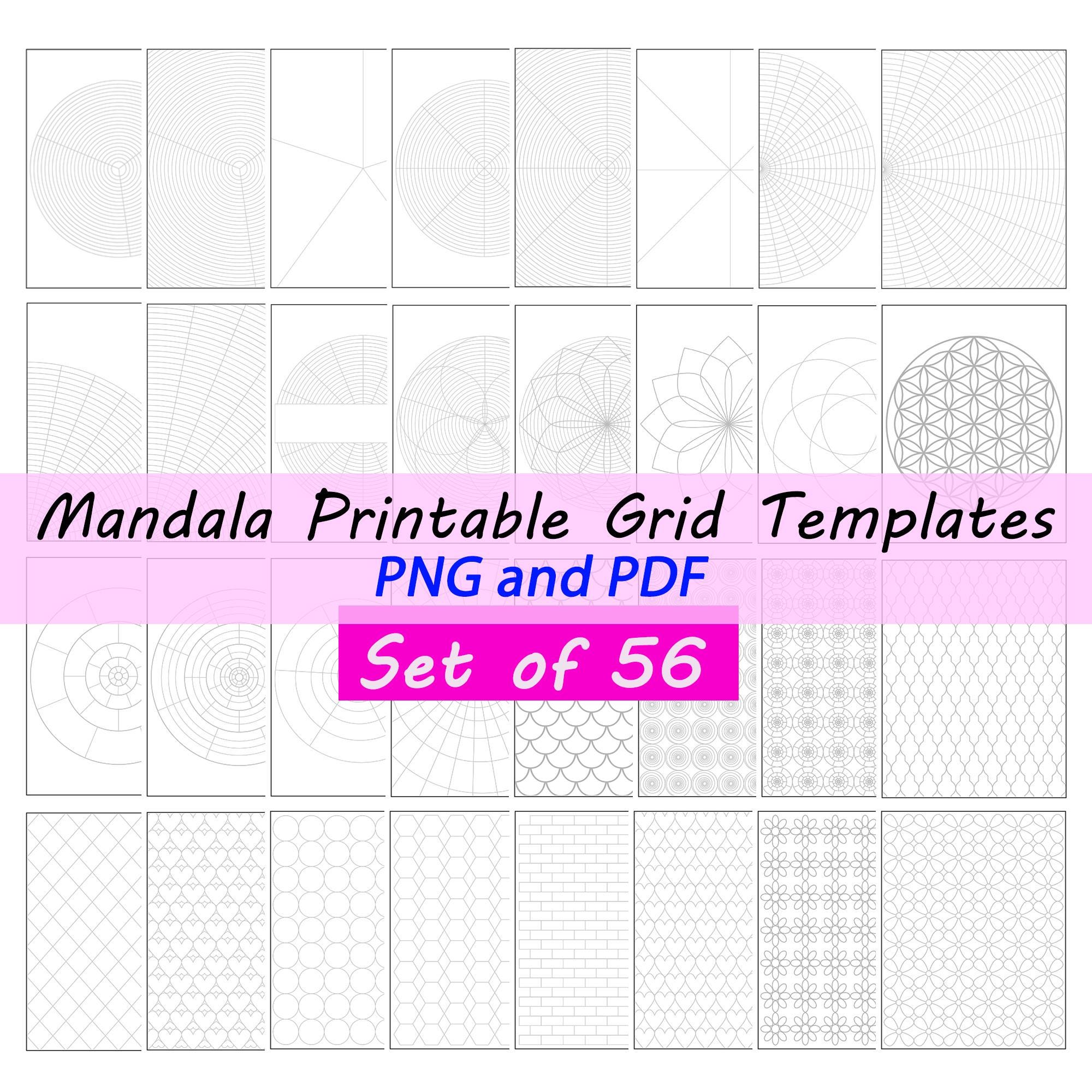 Set di 56 modelli di griglie mandala stampabili, PNG, PDF, modelli ...
