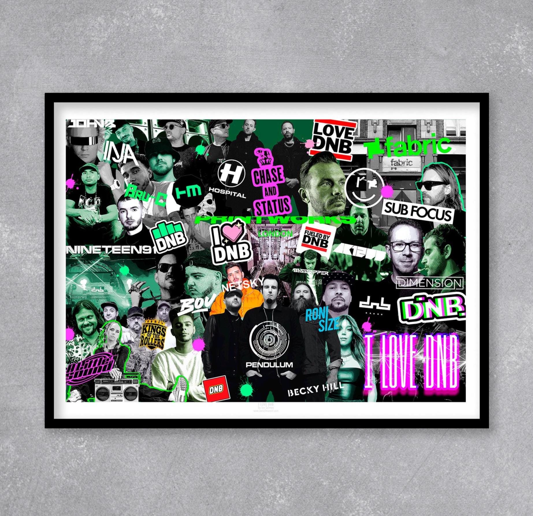 "I Love DnB - Stampa in edizione limitata. Stampa Drum and Bass, Poster Rave, Poster Drum and B...