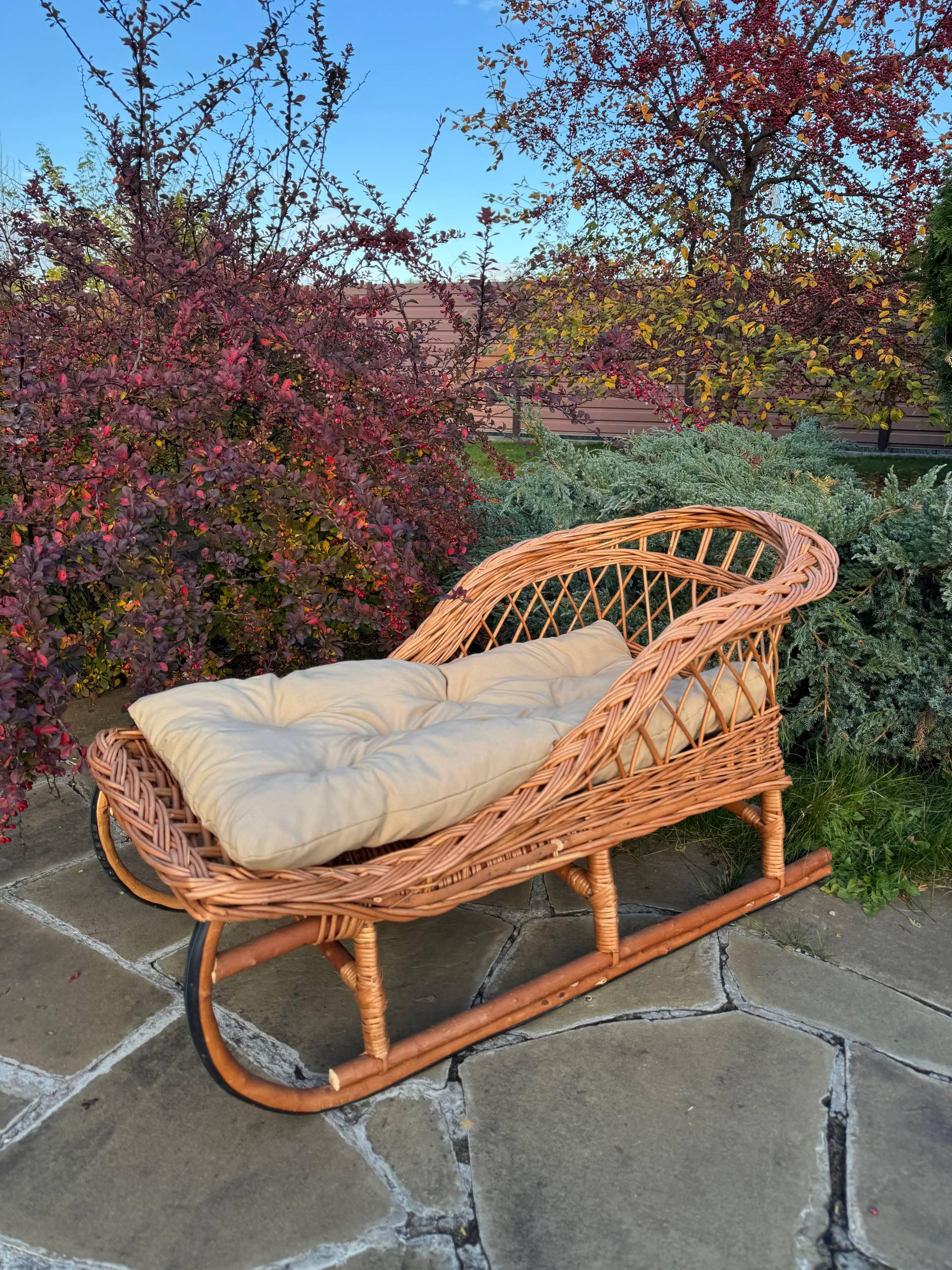 Slitta di Babbo Natale in legno realizzata a mano in vimini naturale e rattan: un grazioso elemento ...
