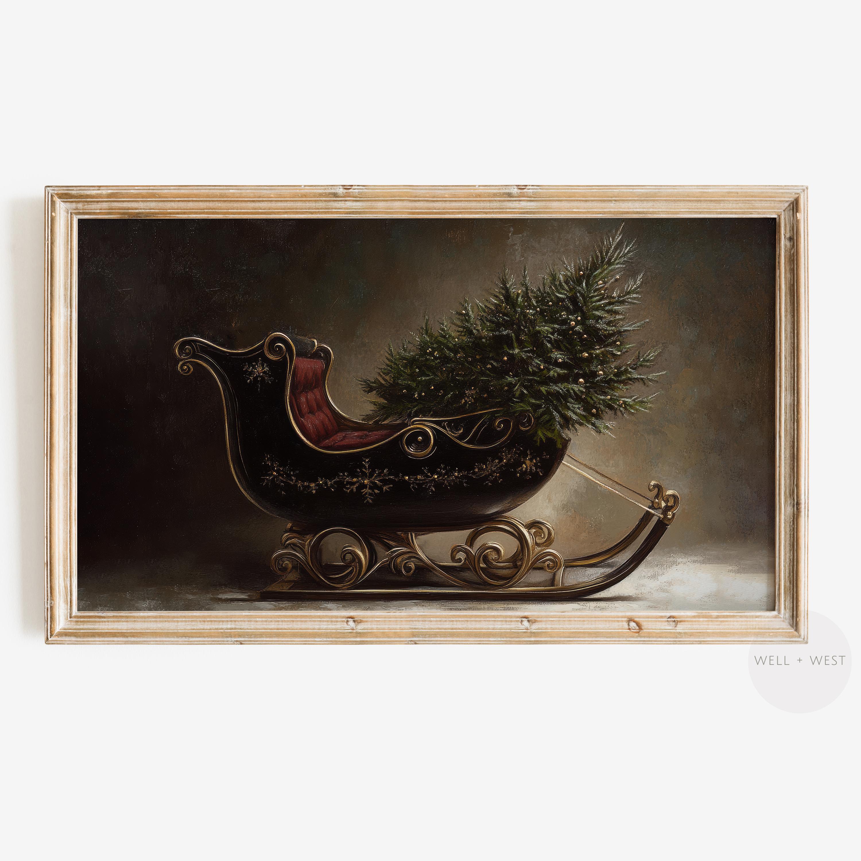 Download digitale immediato per il tuo Samsung Frame TV raffigurante una slitta di Babbo Natale con ...