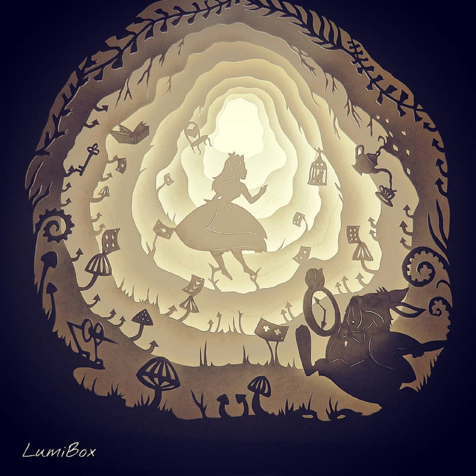 Alice nel Paese delle Meraviglie - File SVG per Light Box con modello di carta ritagliata 3D, File S...