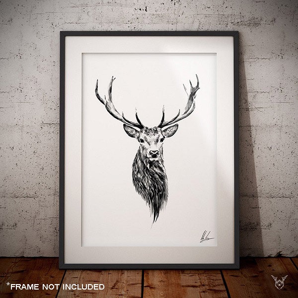 Stampa di cervo - Dipinto di testa di cervo - Stampa di testa di ce...