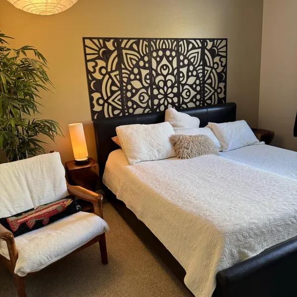 Immergiti nella serena bellezza del nostro pannello per testiera Mandala in compensato. Questo sorpr...