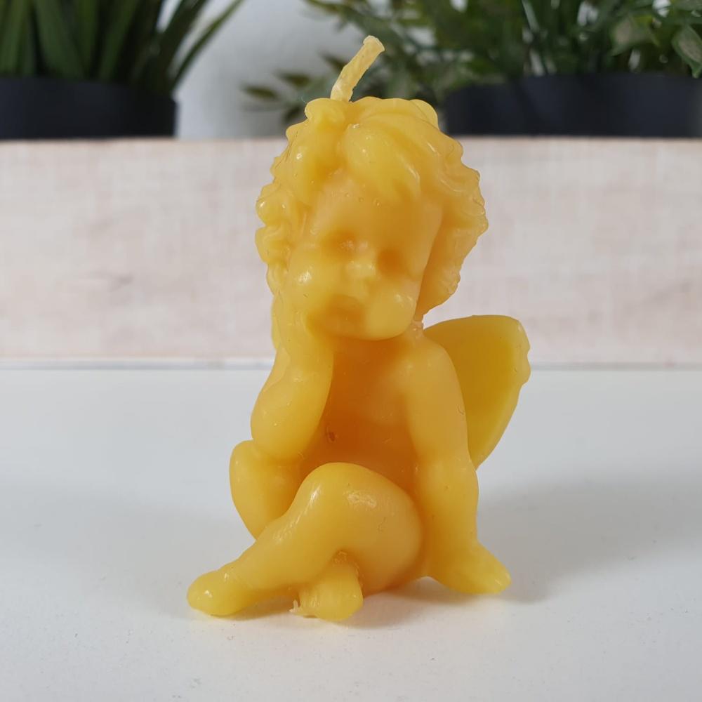 Candela in cera d'api, candela angelo contemplativo, 5,5 cm - cande...