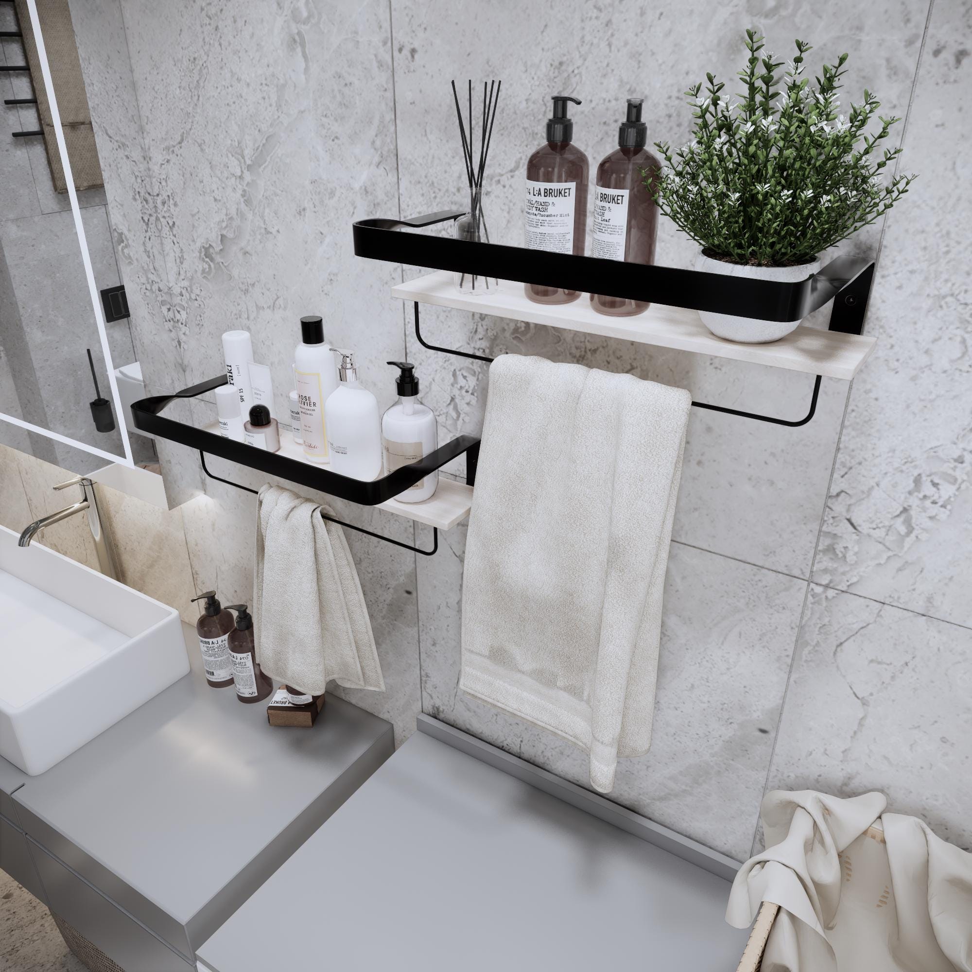 【Mensole rustiche in legno con portasciugamani】: le mensole sospese sono realizzate in...