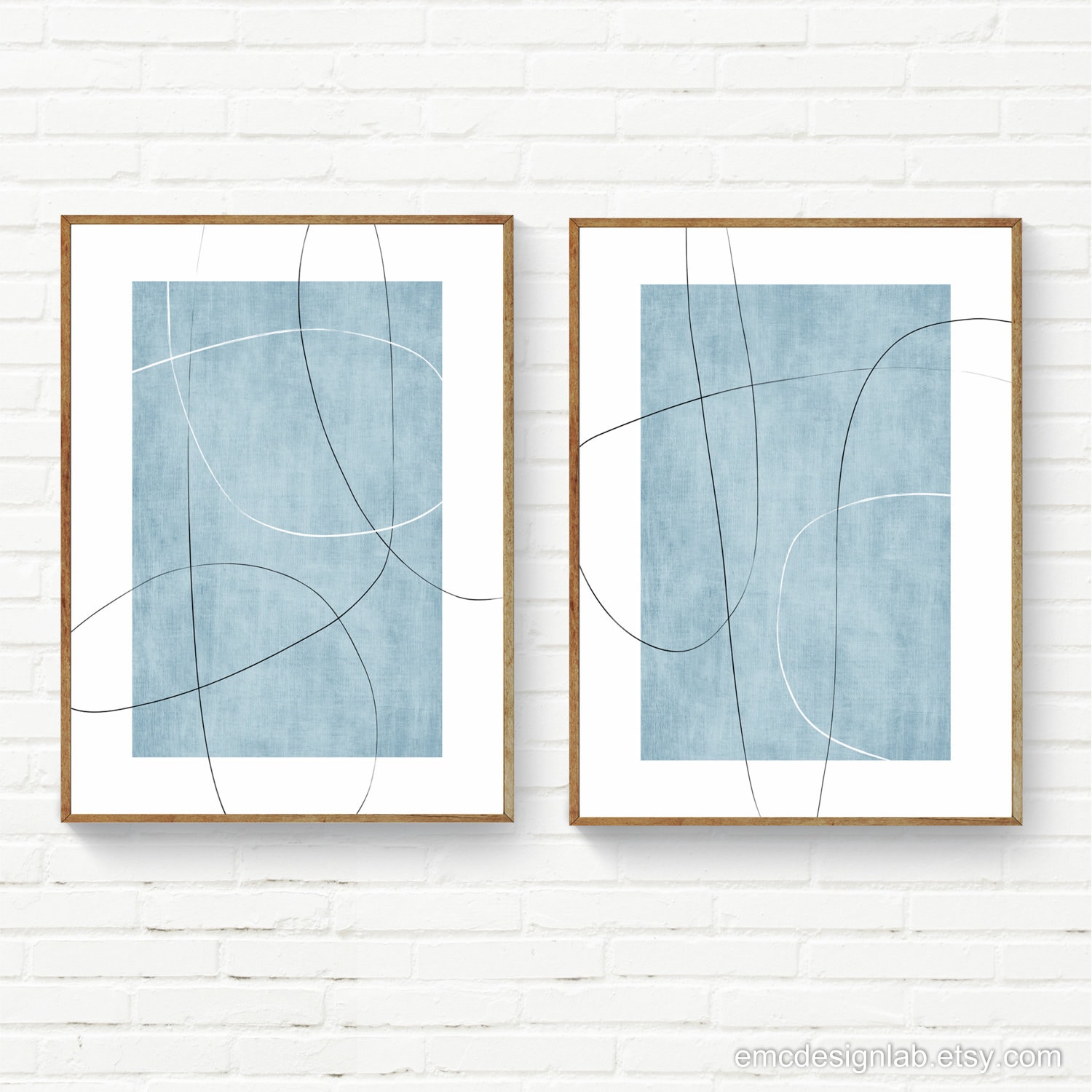 Set di 2 stampe lineari blu navy, set di stampe lineari contemporan...