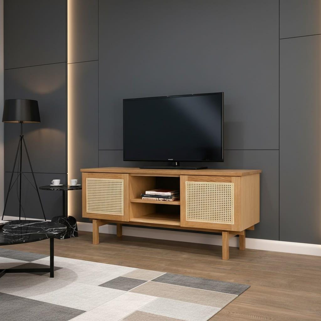 Mobile TV in rovere con fettuccia di canna / Mobile TV in stile mod...