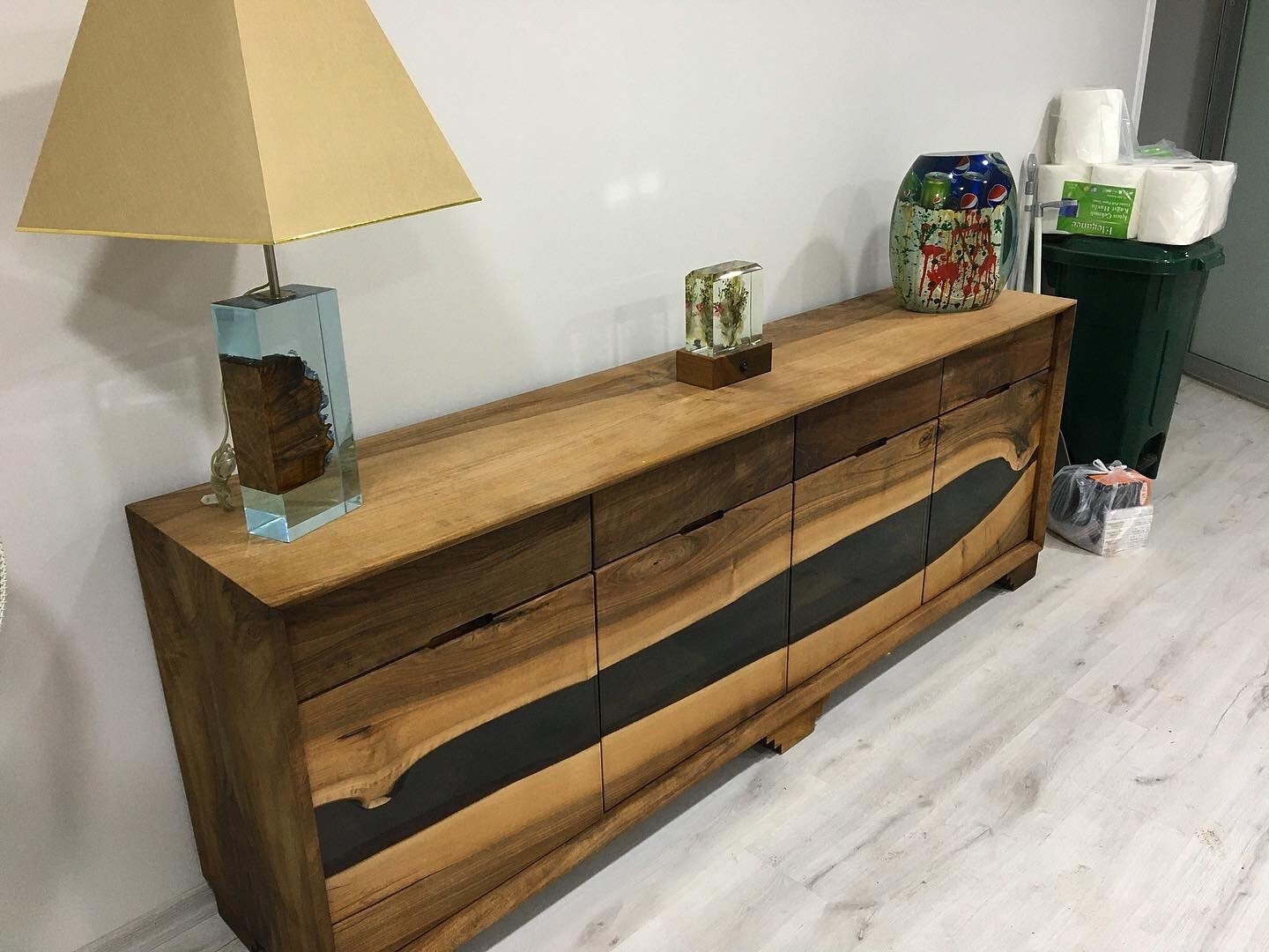 Mobile TV con credenza in legno di noce grigio fumo epossidico pers...