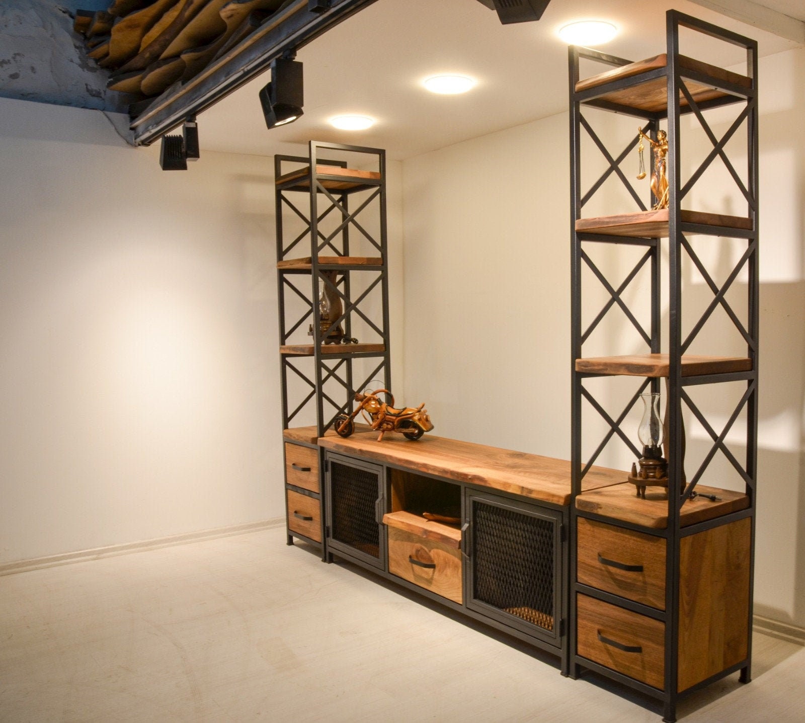 Mobile TV in metallo massello di noce marrone scuro su ordinazione ...