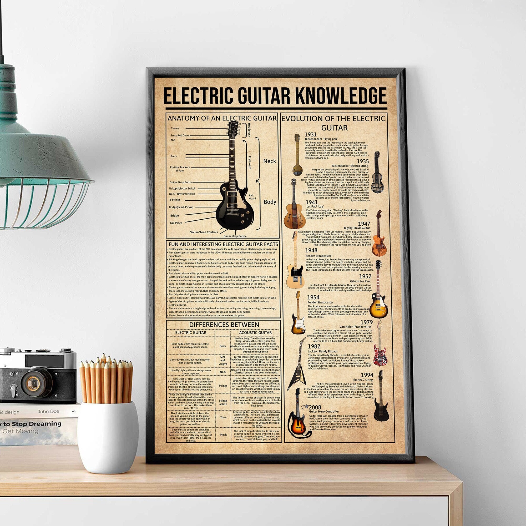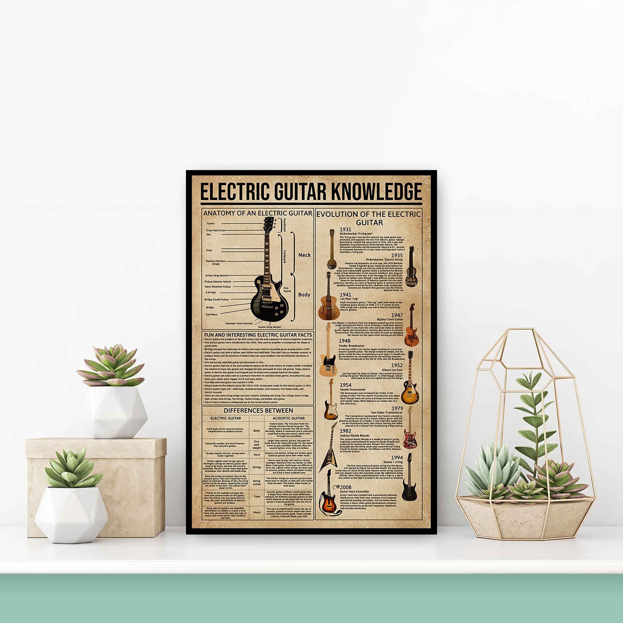 Poster sulla conoscenza della chitarra elettrica, Anatomia della ch...