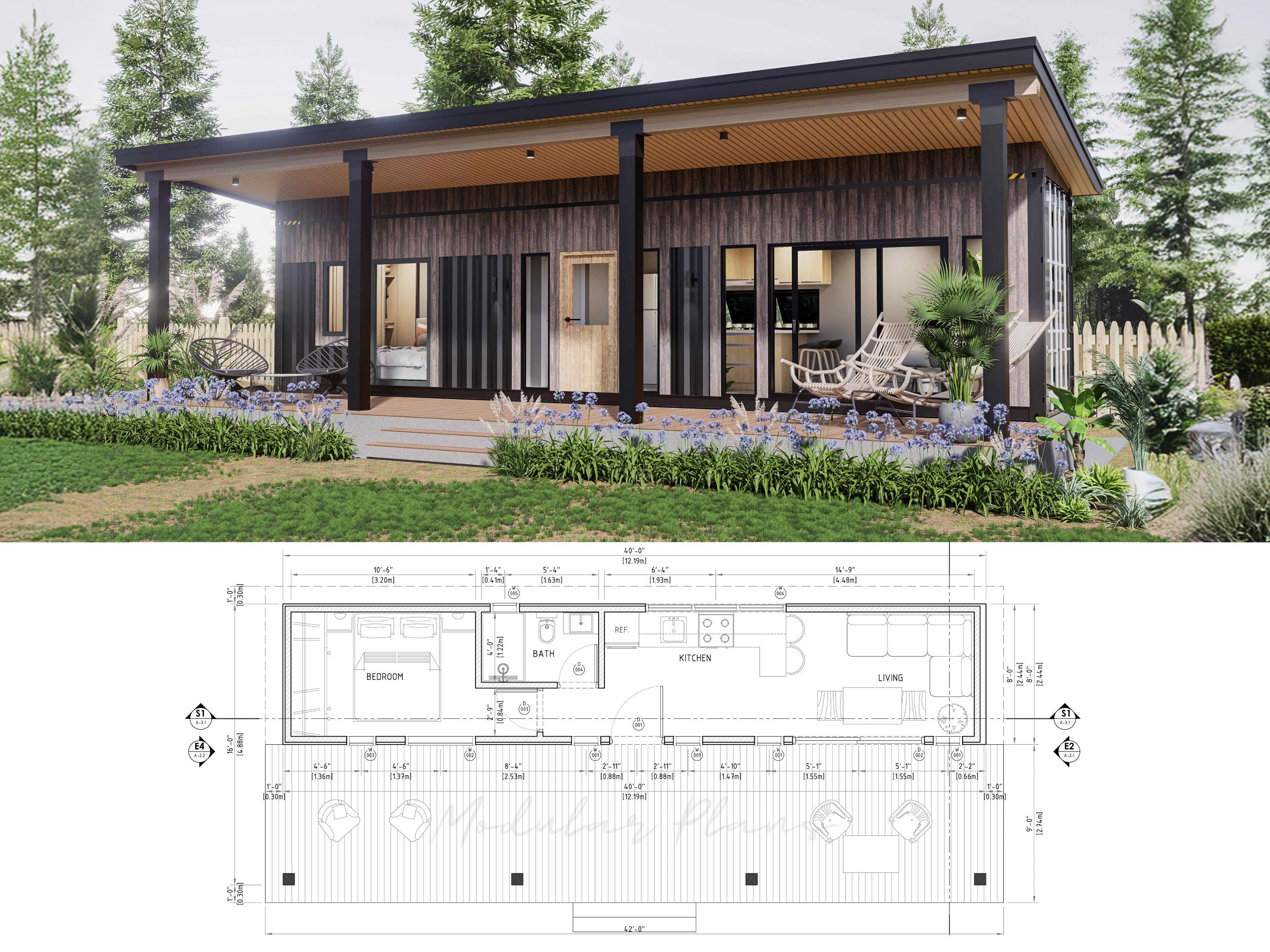 Casa container da 4 camere da letto 80 Keppel / Progetti di case in costruzione / Blueprints USA pie...