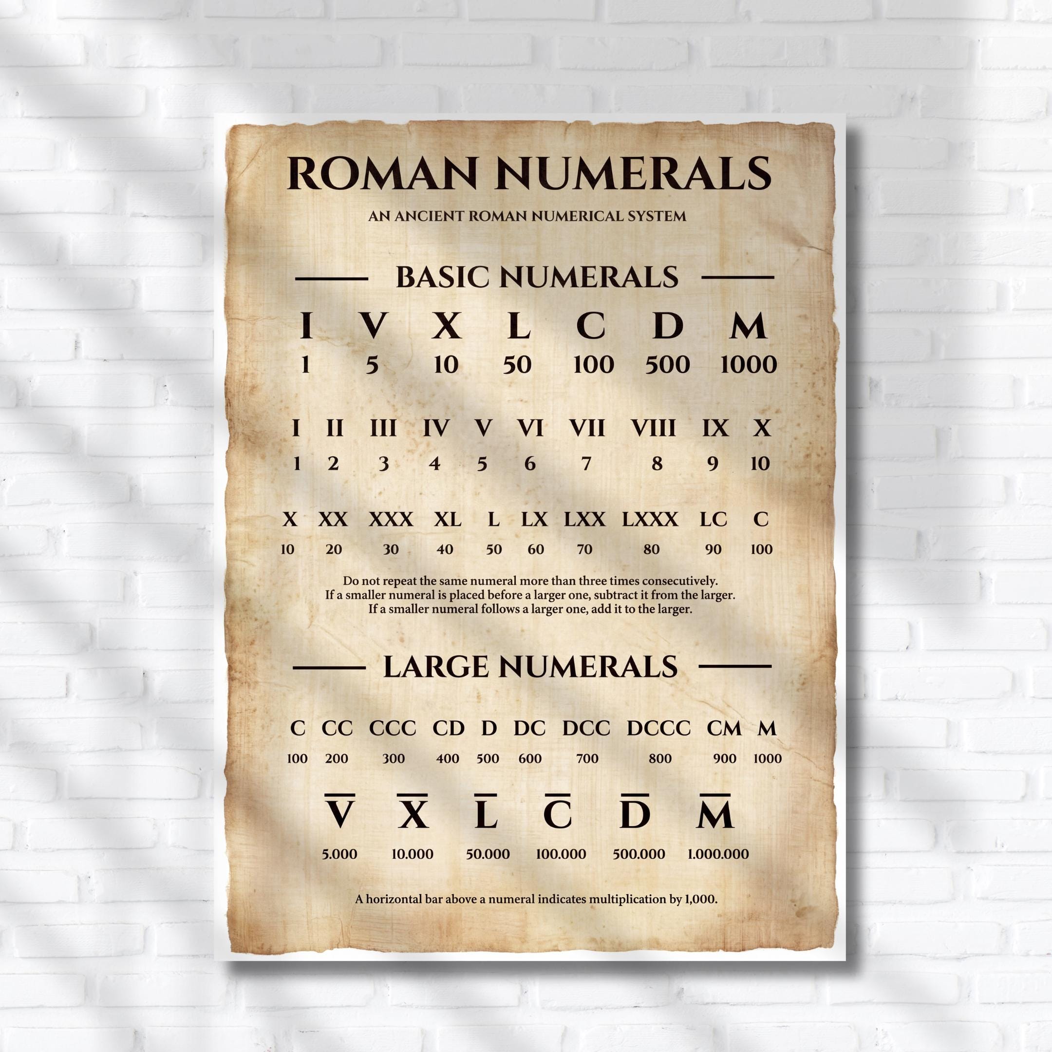 Tabella dei numeri romani stampabile / Poster matematico vintage da...