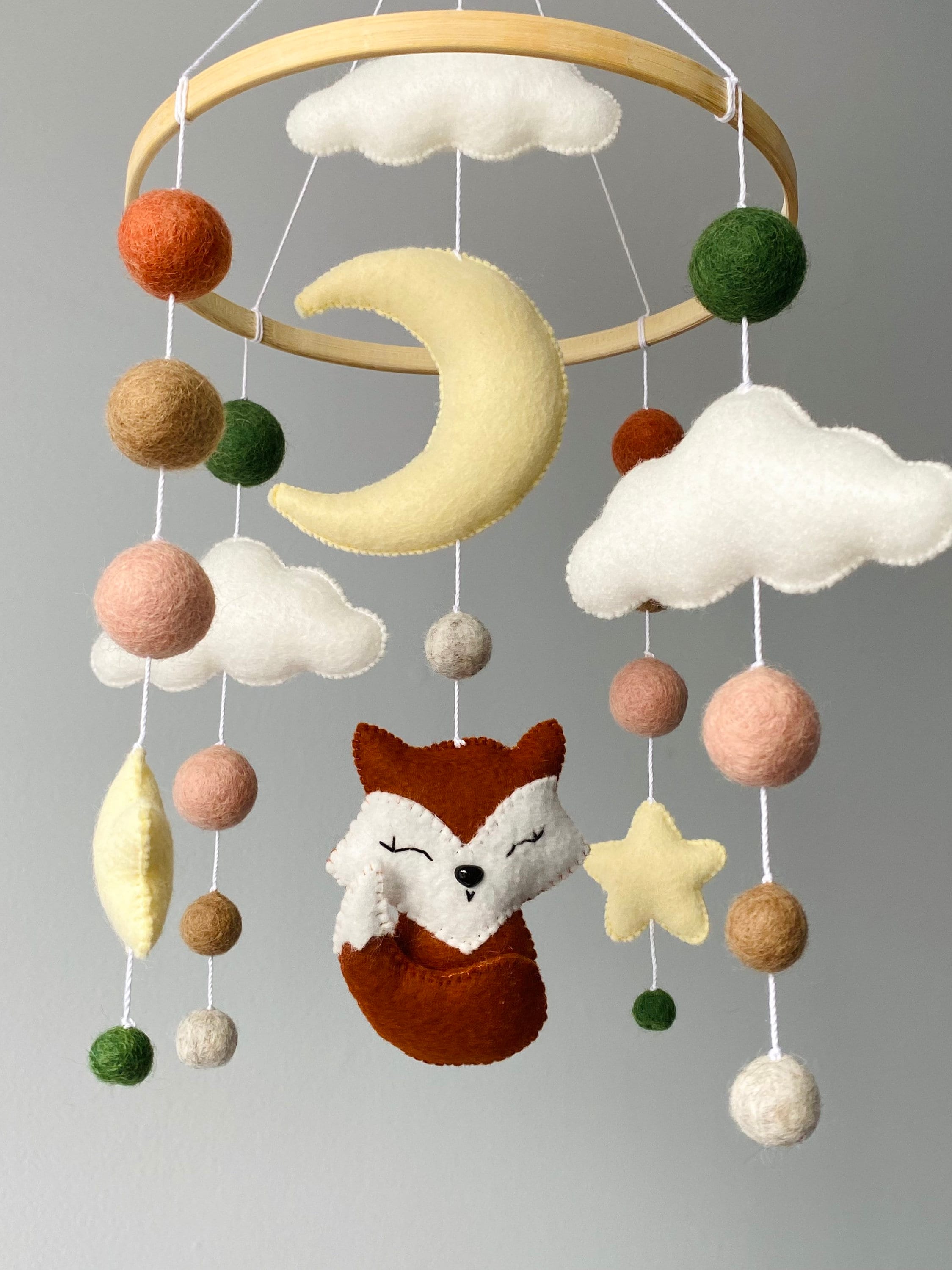 Questo mobile con volpe, luna, stelle e nuvole è ideale come elemento decorativo per la camer...