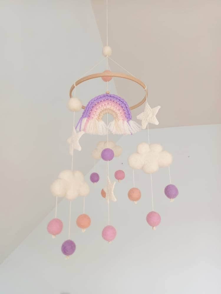 Mobile per neonati Clouds, mobile per culla Rainbow, mobile per culla WoodLand, mobile per neonata, ...