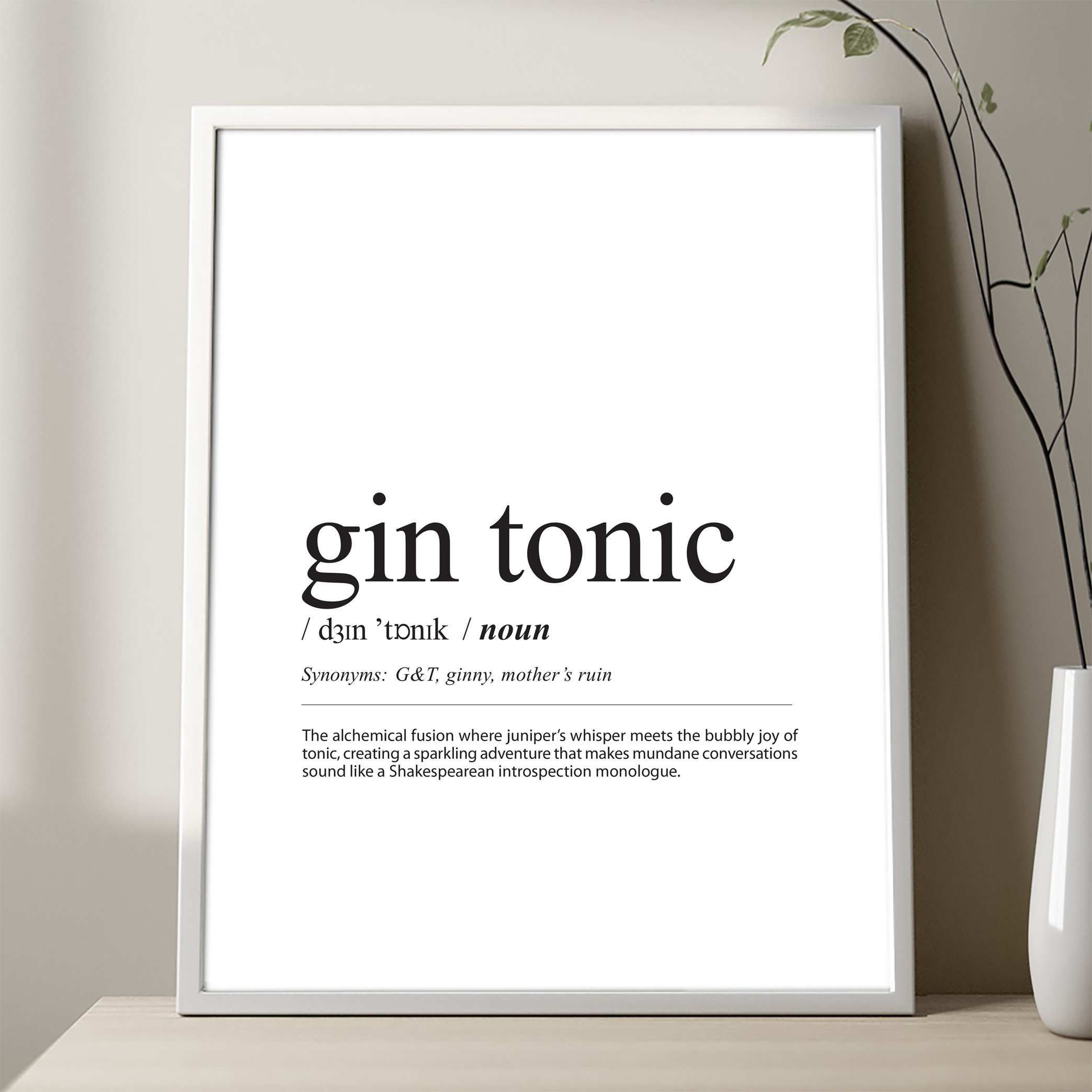 "Stampa con la definizione di Gin Tonic, poster con la definizione di Gin Tonic e tipografia, s...