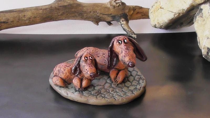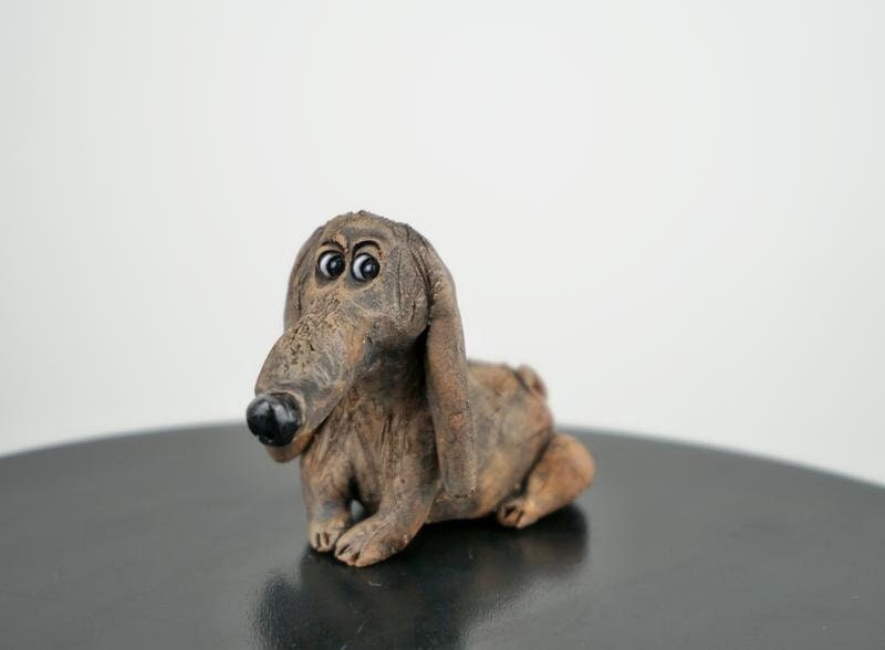Statuina in ceramica fatta a mano dall'autore raffigurante un bassotto (4 x 7 cm)