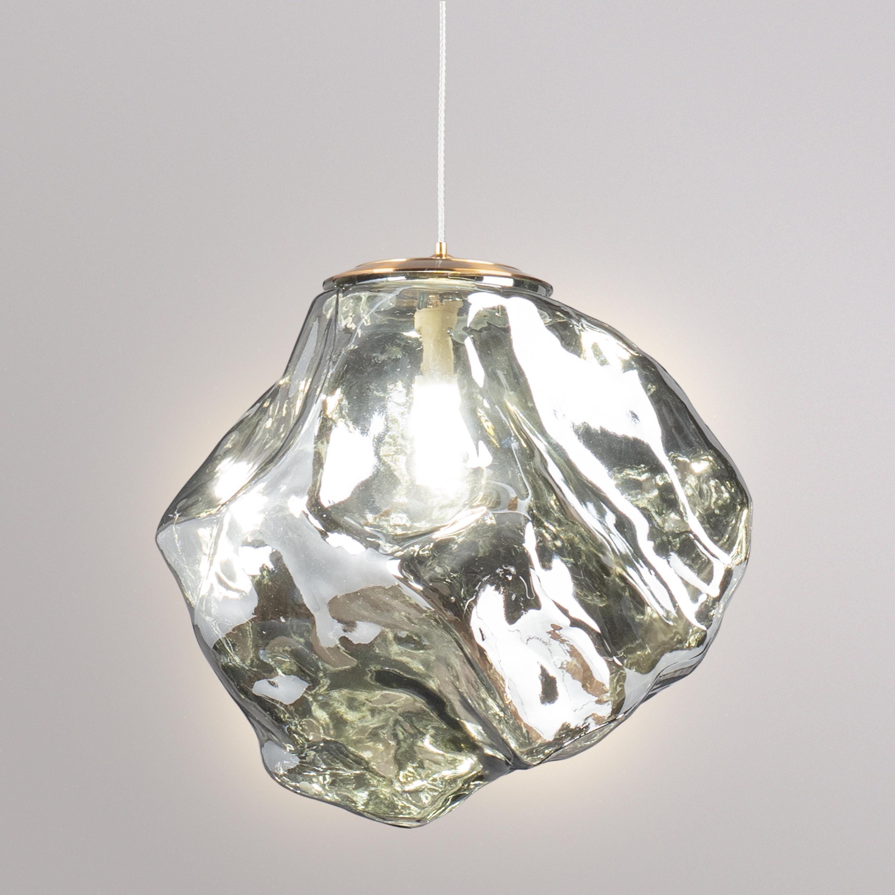 Lampada a sospensione in vetro deformato, paralume in vetro fuso, l...