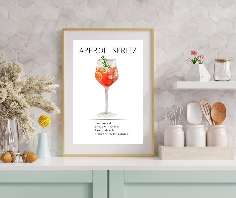 Ricetta del cocktail Aperol Spritz Stampa / Download digitale / Arte elegante per carrello da bar Sa...