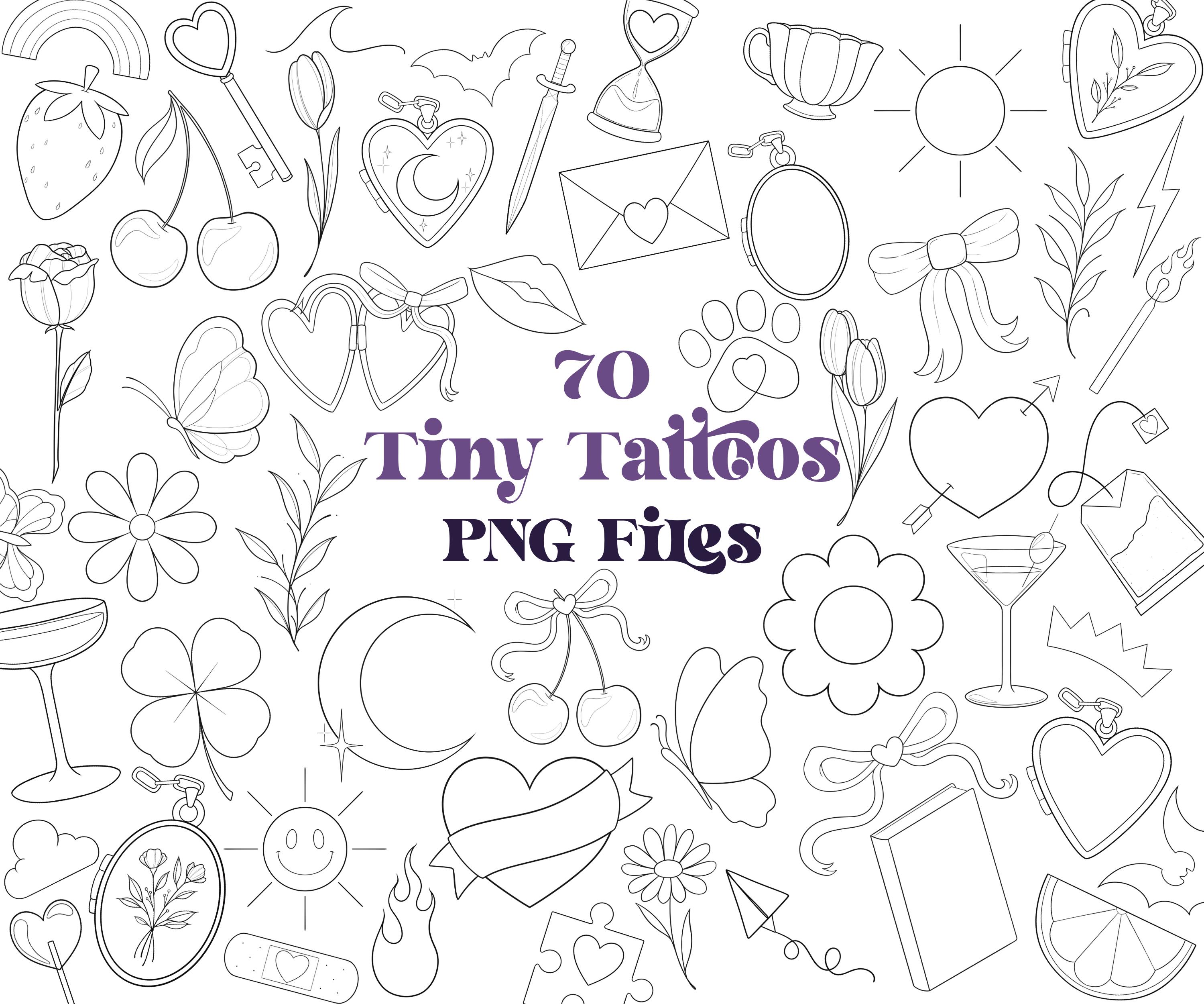 70 piccoli tatuaggi file PNG / disegni di tatuaggi Fineline Png / t...