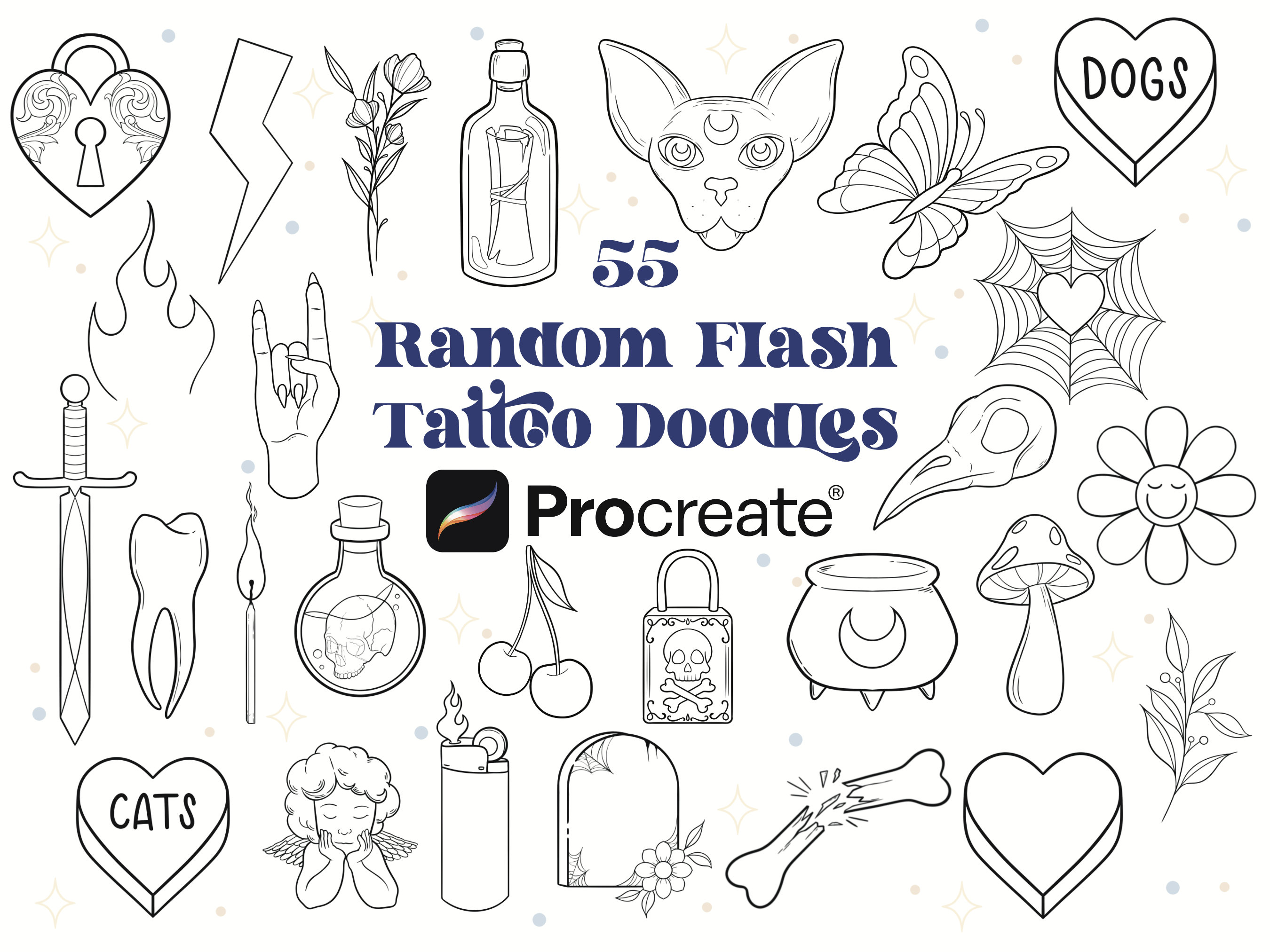 55 disegni di tatuaggi flash casuali Procreate / Pennello Procreate...