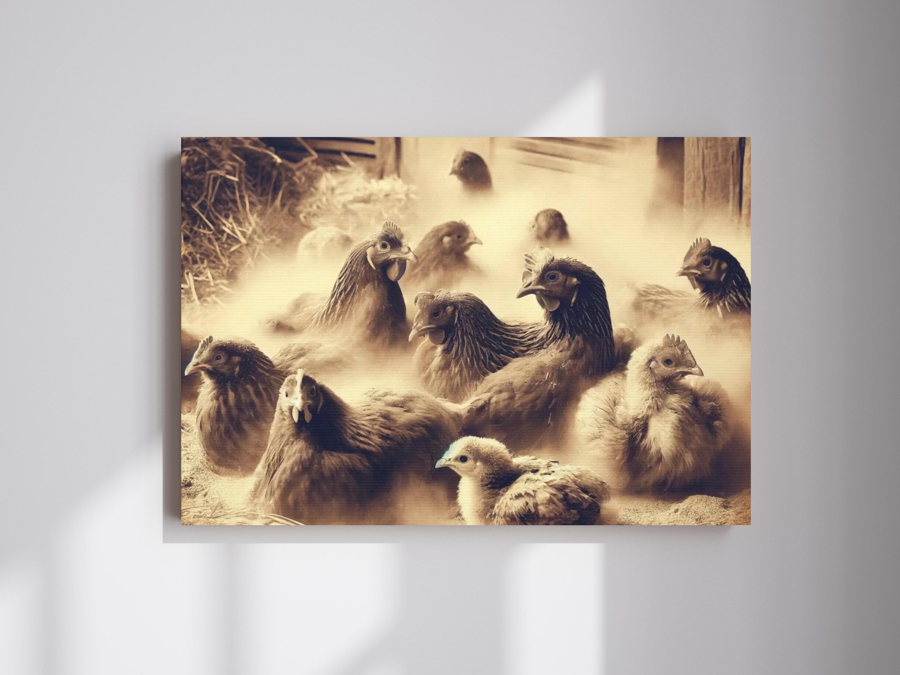 Quadro su tela con bagno di polvere di pollo, quadro su tela per pollaio, arredamento moderno in sti...