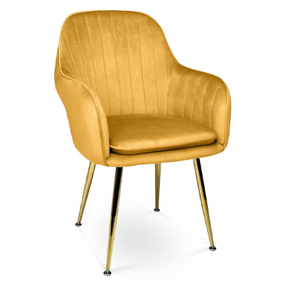Sedia da pranzo in velluto giallo senape, poltroncina vintage