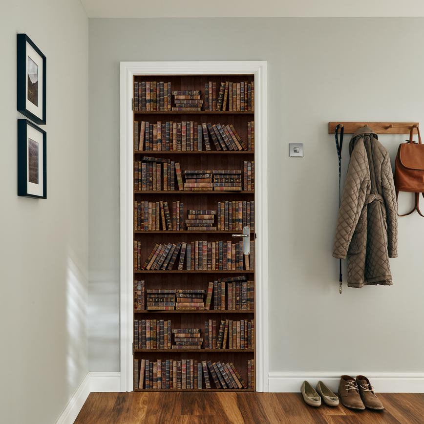 Adesivo murale per porta, carta da parati per biblioteca, adesivo p...