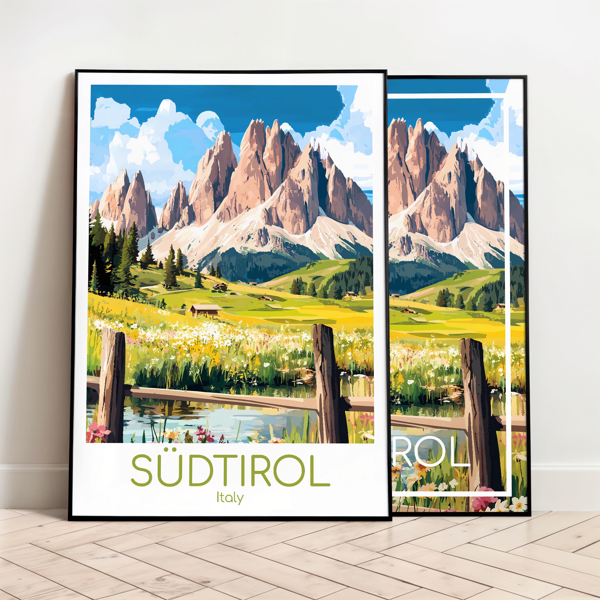 Vivi l'energia estiva dell'Alto Adige con questo poster di viaggio dal design accattivante. Il tuo s...
