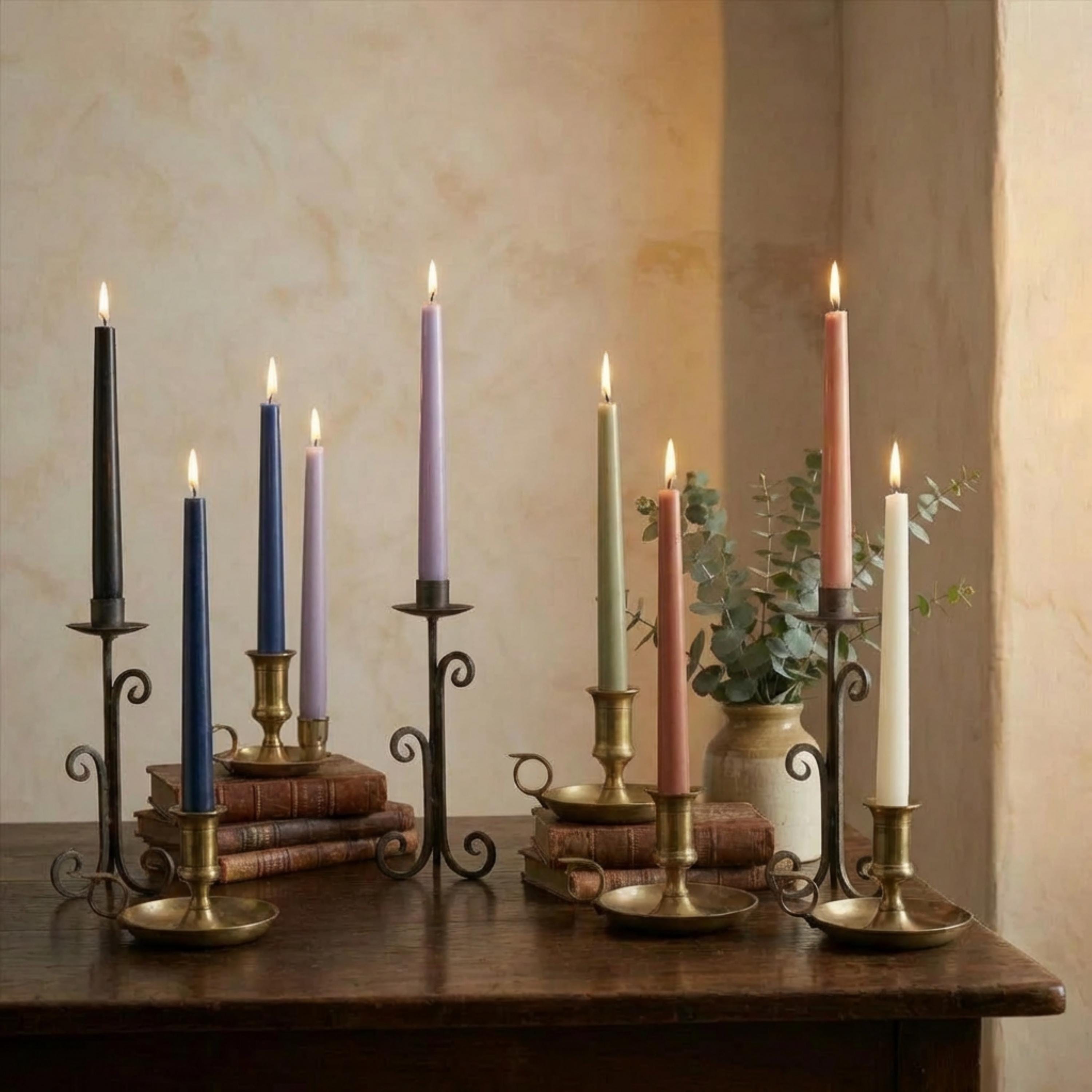 Trasforma il tuo spazio con questo elegante set di candele coniche, realizzate con una miscela pregi...