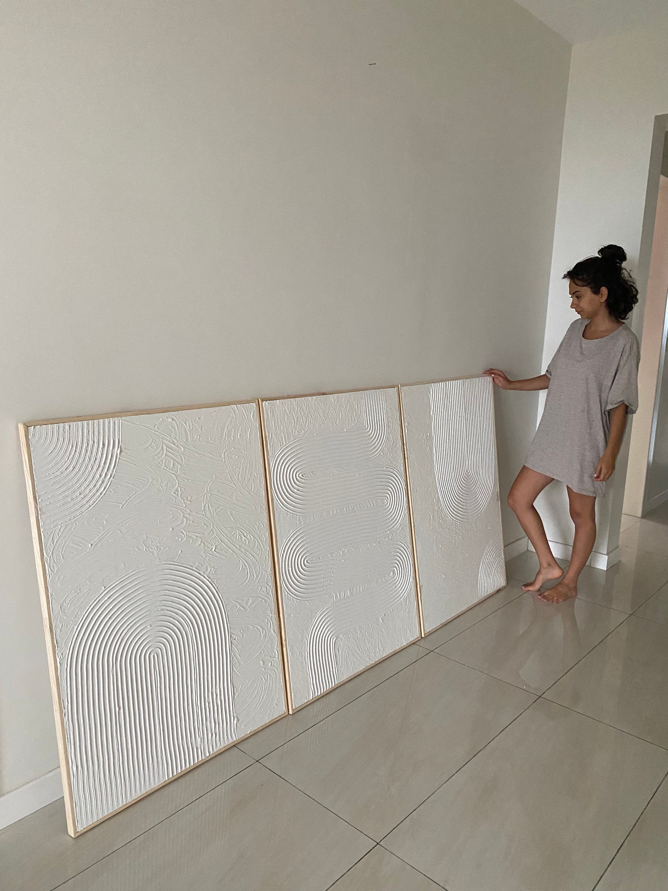 Set XL di 3 quadri da parete bianchi testurizzati, quadri da parete...