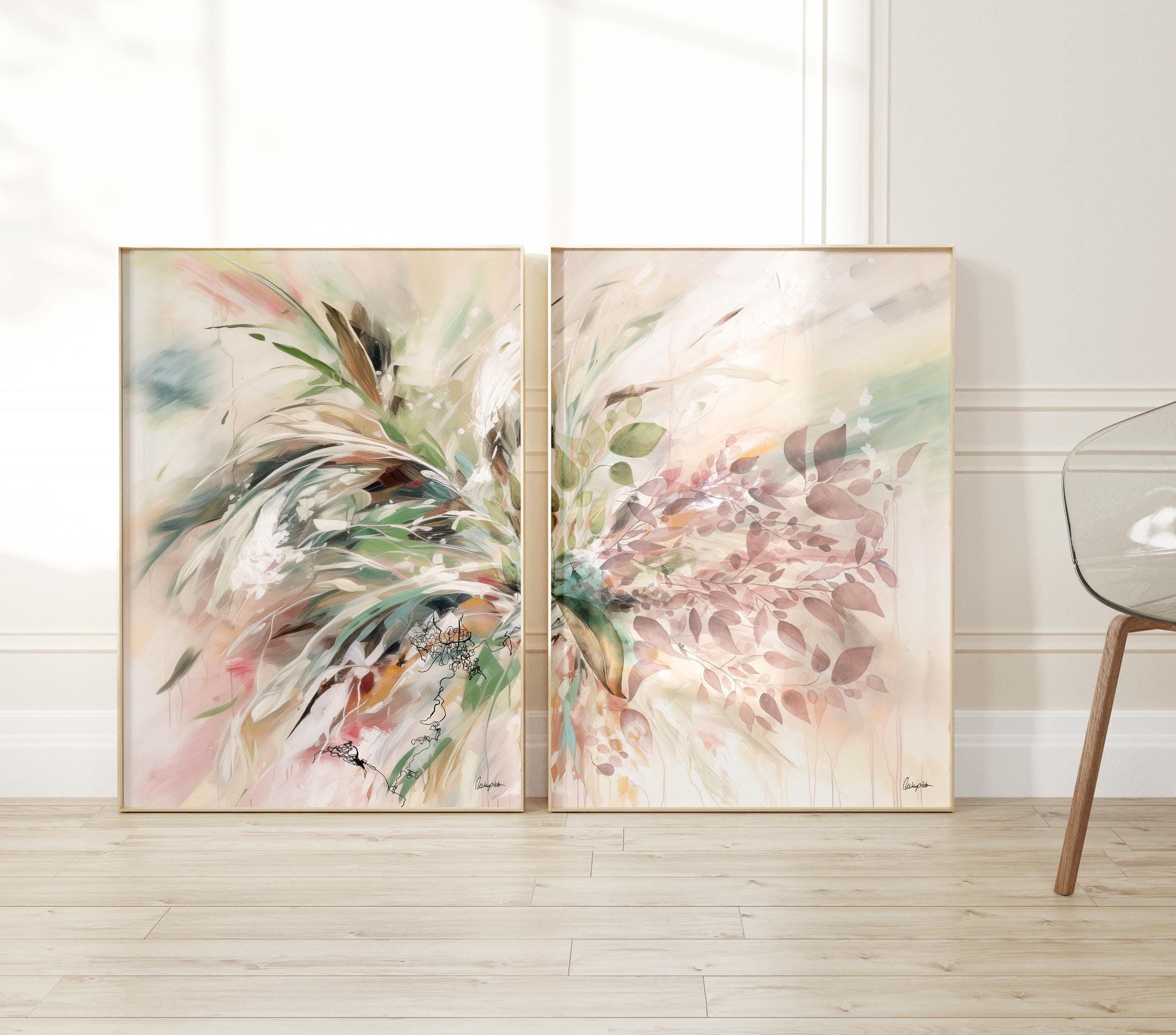Set di quadri da parete floreali astratti, grandi quadri dai colori...