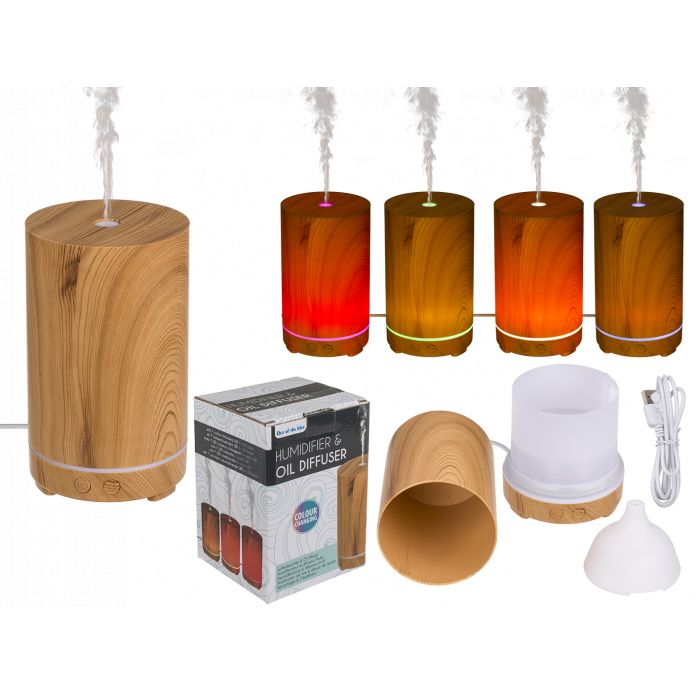 Umidificatore/Diffusore di olio, Ottica Torre in legno, con LED e cavo Usb, per circa 100 ml, circa ...