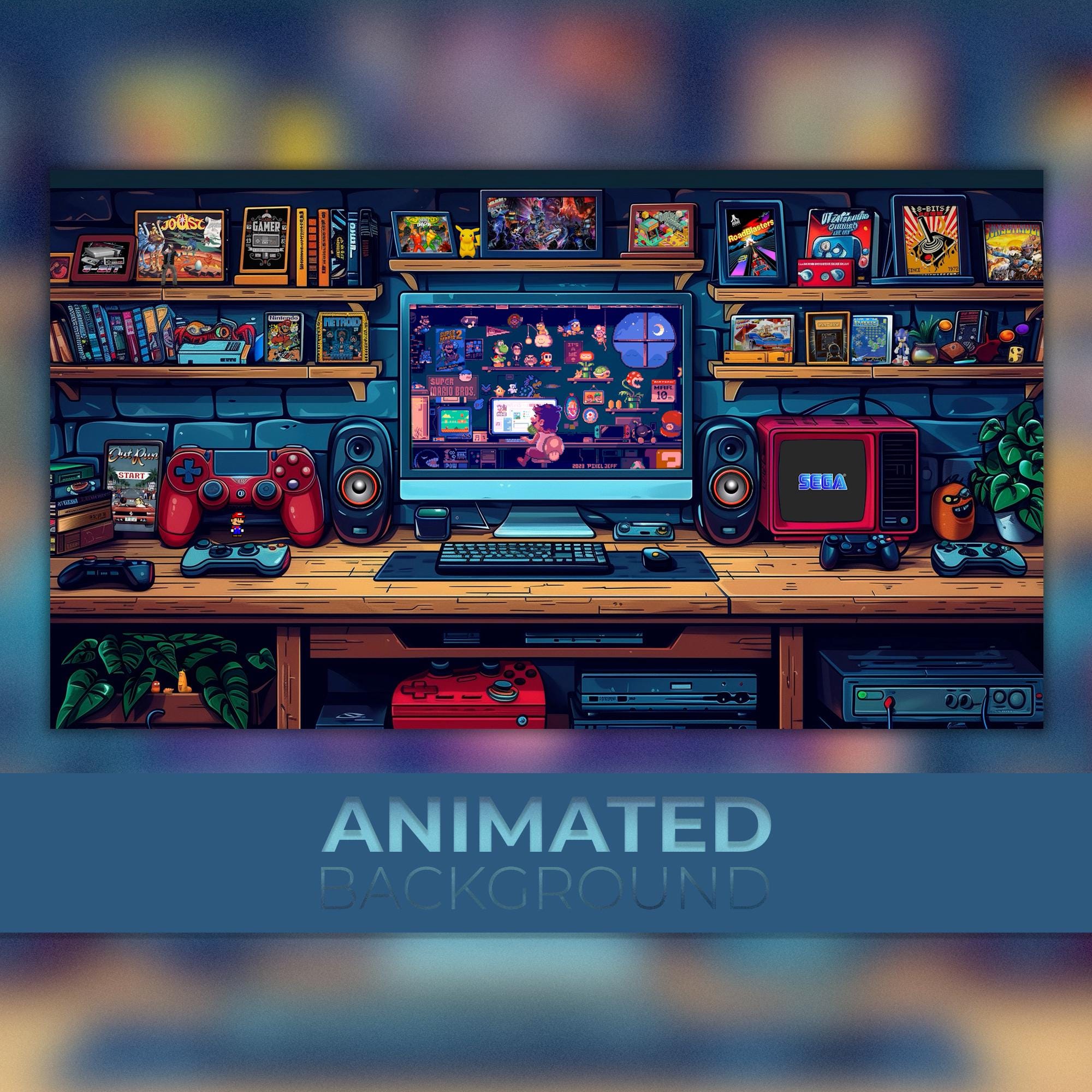 Sfondo animato, scaffale per console retrò, sala videogiochi...