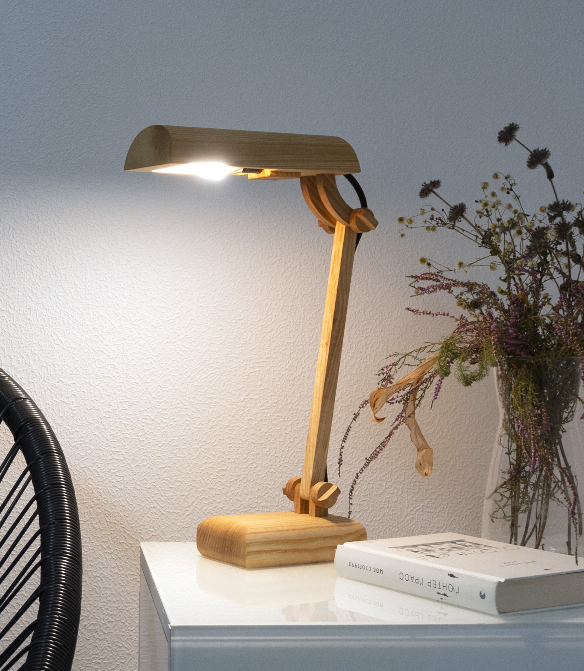 Lampada da scrivania regolabile in legno, disponibile in rovere, fr...