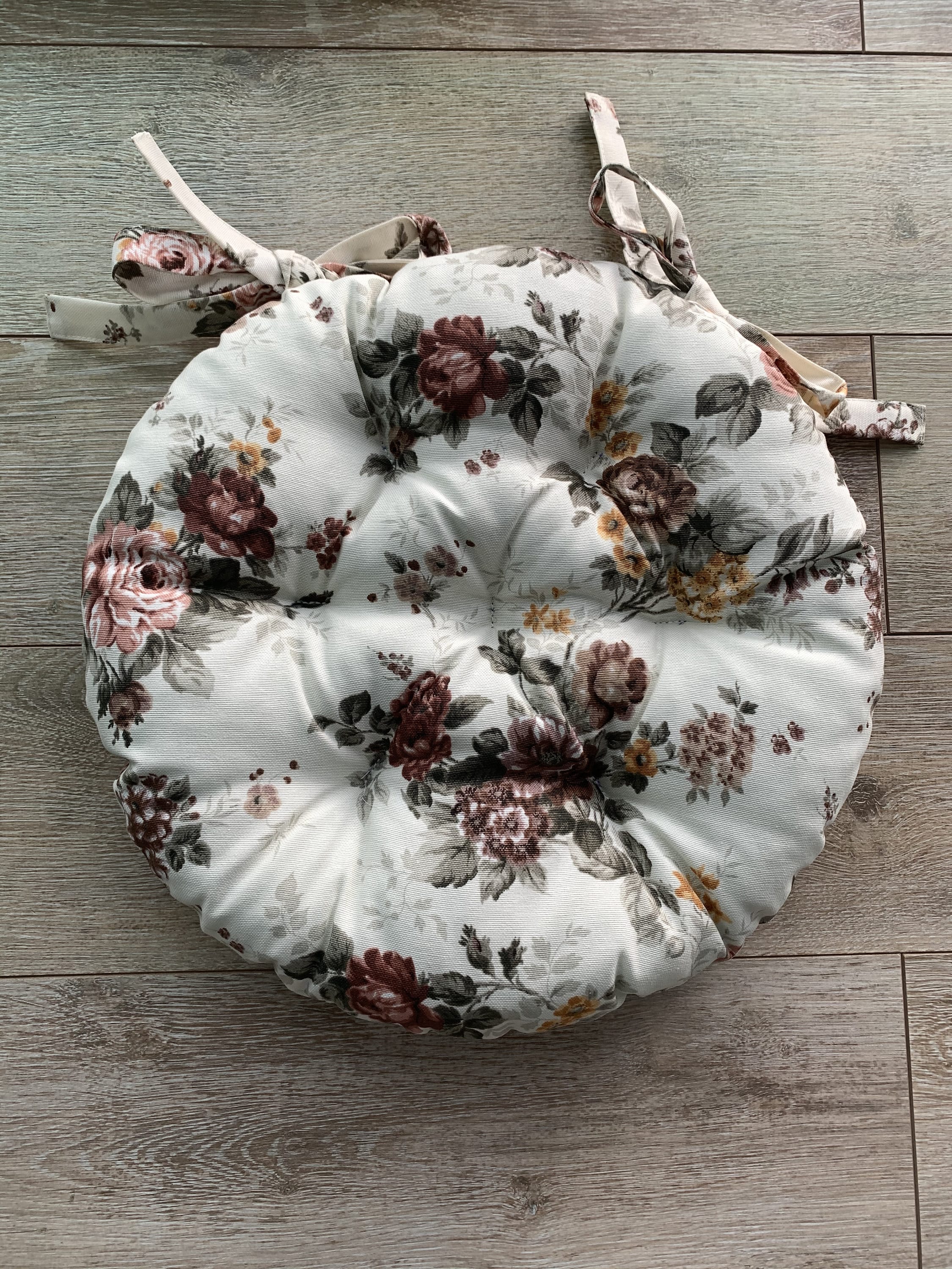 Cuscino rotondo con lacci per sedia in tessuto pregiato e denso con un bellissimo motivo Un cuscino ...