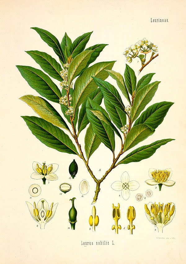 Vintage Botanical Floral Laurus mobilis stampa alloro hearb pianta ...