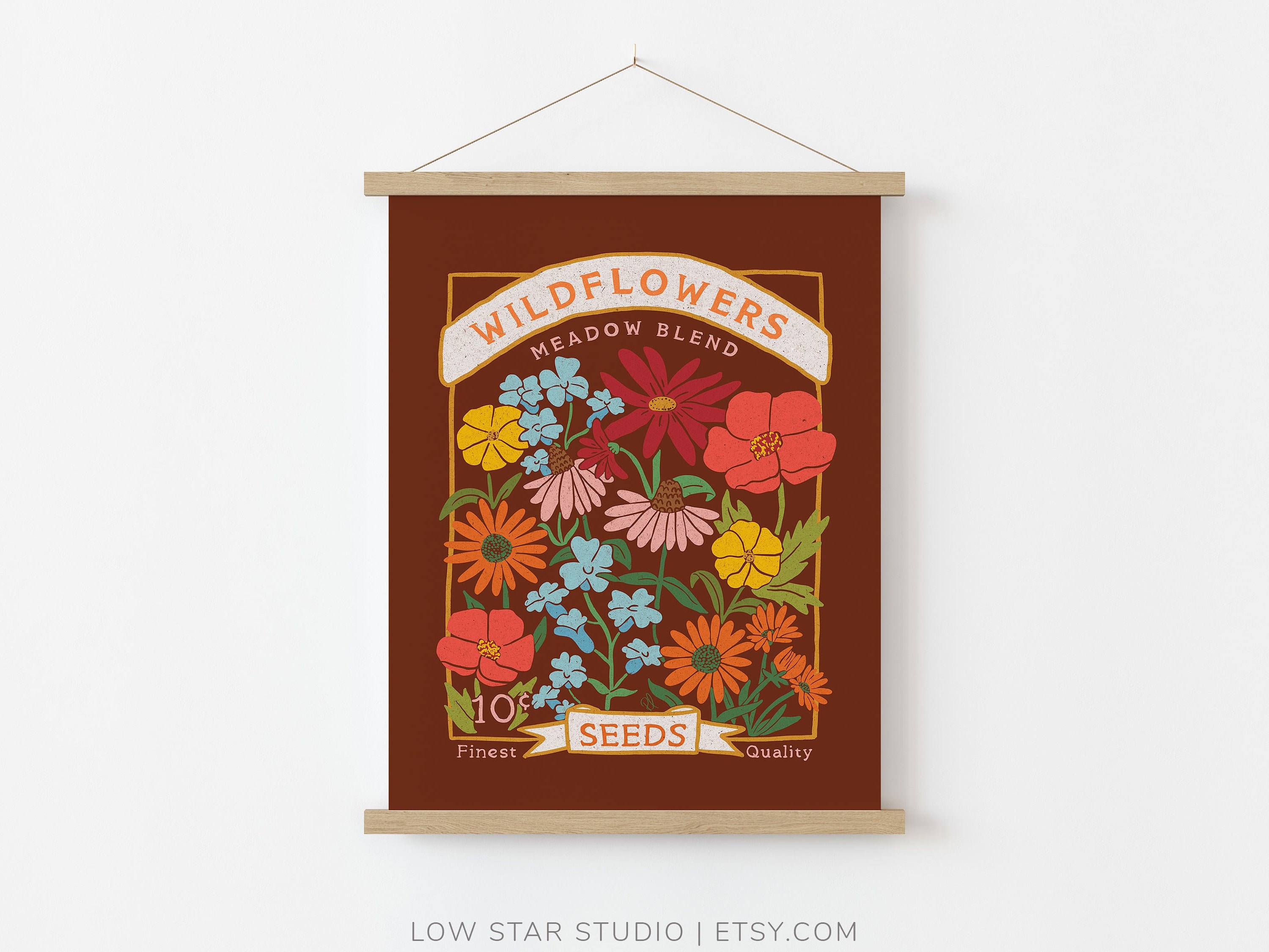 Stampa artistica con bustina di semi di fiori selvatici: poster flo...