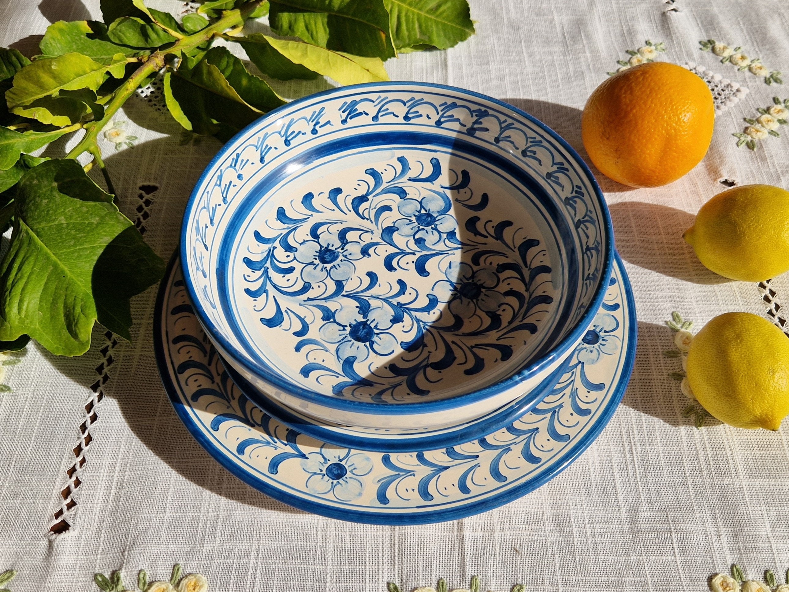 Servizio di Piatti Artigianale Siciliano Caltagirone nome della decorazione Floreale Blu, Il servizi...
