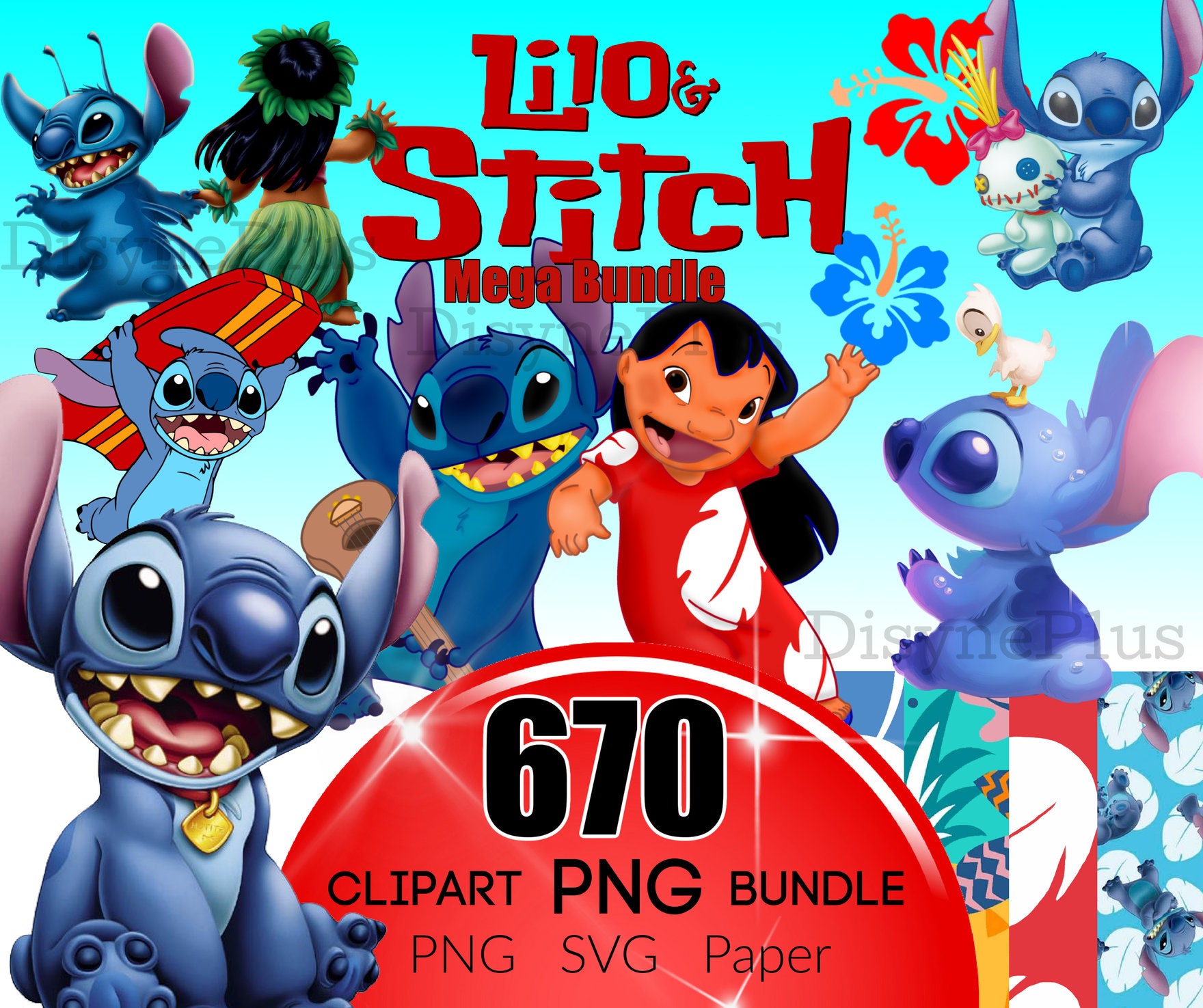 Mega Bundle di Lilo & Stitch PNG SVG Clipart con documenti digitali Questo download digitale ist...
