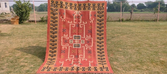 Tappeto Kilim tessuto a mano, tappeto di iuta di lana, tappeto Kili...