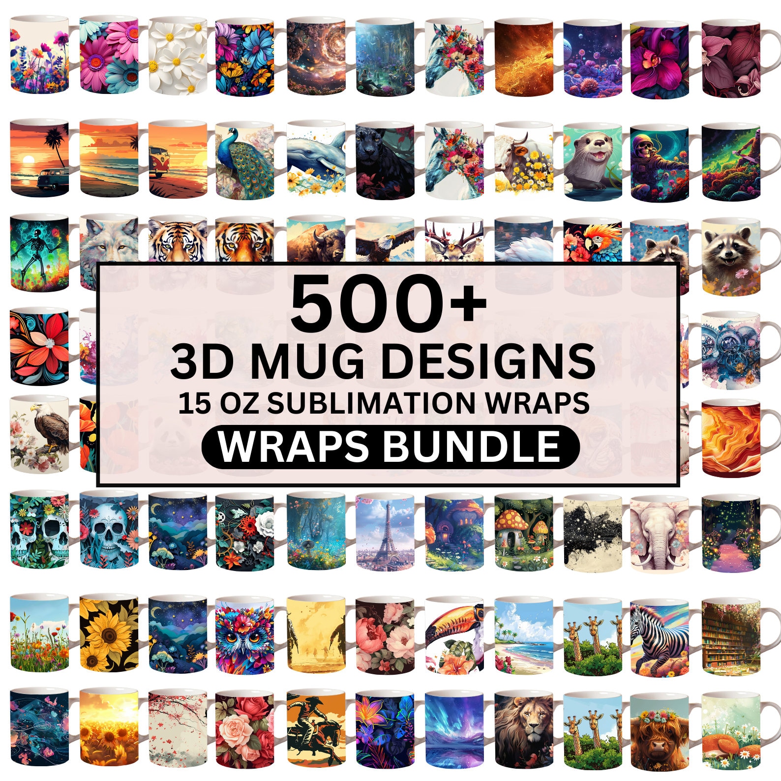 Oltre 500 design per sublimazione di tazze 3D, tazze con fiori, tazze da 15 once PNG, tazze con farf...