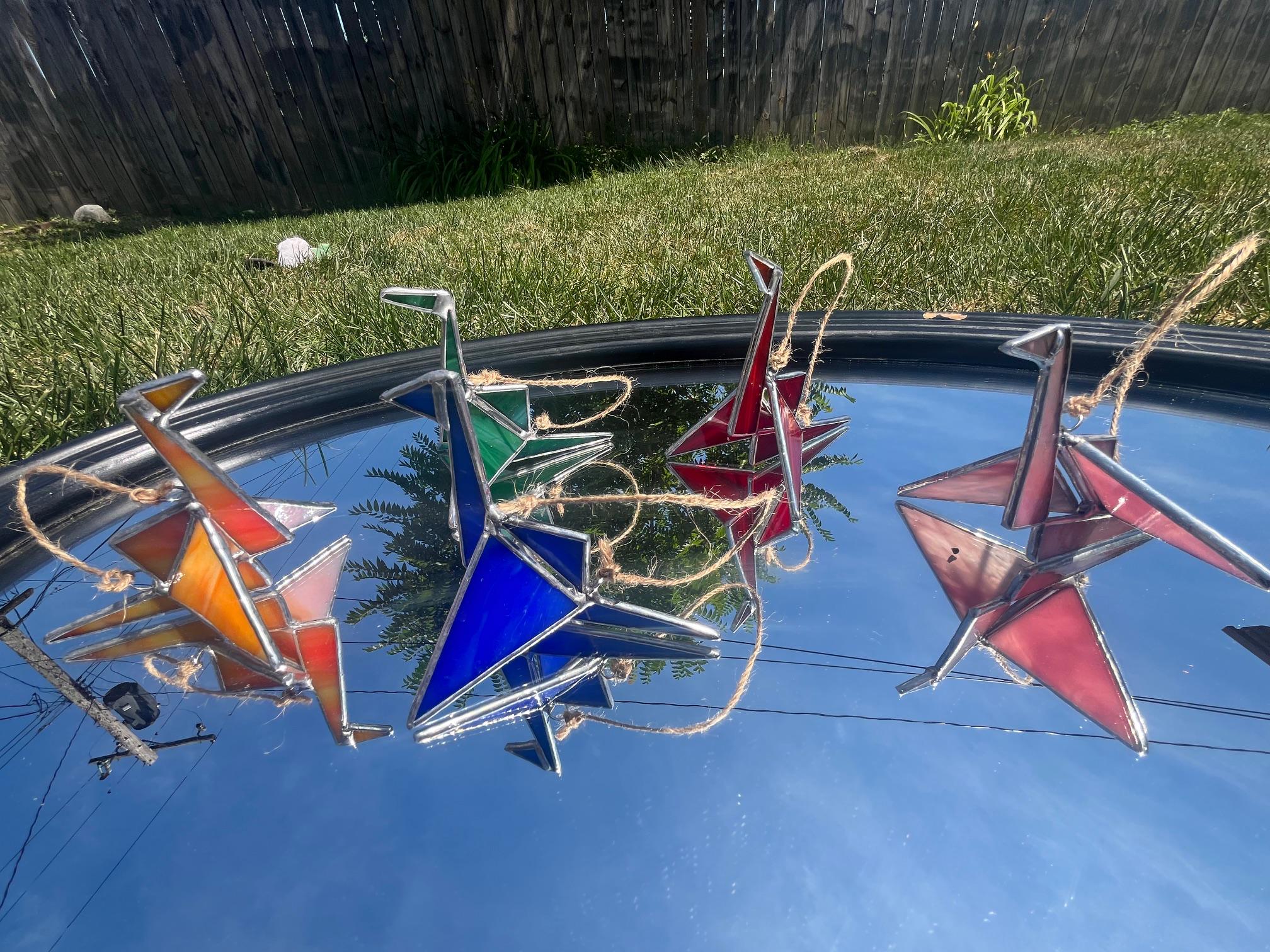 Le gru sono tridimensionali e possono essere appoggiate su un tavolo o appese. Le immagini mostrate ...